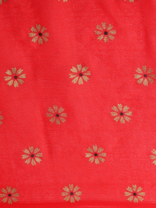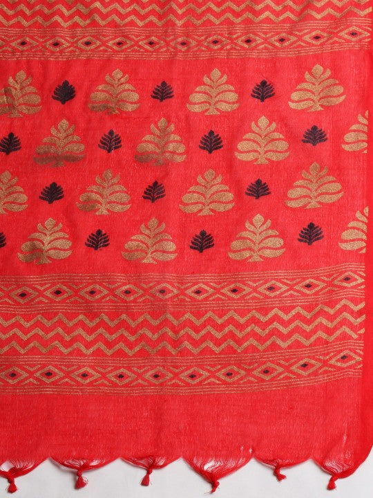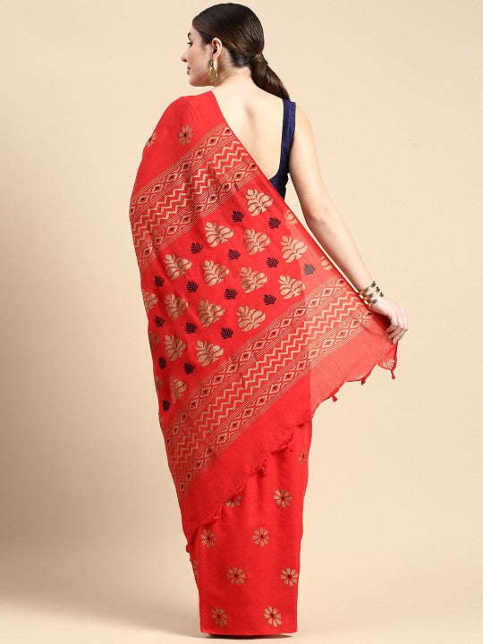 Description This exquisite red taant saree features a beautiful floral woven design with an intricate border, perfect for any special occasion. Crafted from pure cotton, it offers exceptional comfort and a graceful drape. The saree includes an unstitched blouse piece, allowing for custom tailoring to your preference. Its vibrant colour and traditional weaving make it a timeless addition to your ethnic wardrobe. This elegant piece blends heritage craftsmanship with contemporary style, ideal for festive celebrations or daily wear. Experience the rich texture and enduring beauty of this authentic Indian handloom saree. Please note, the model's blouse is for styling; refer to the provided image for the actual blouse piece.