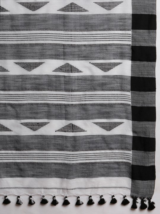 Buy DESH BIDESH Woven Design Striped Pure Cotton Taant Saree - Sarees for Women from DESH BIDESH at Rs. 1539. Style ID: 24016756. Design Details: White and black taant saree. Striped woven design saree with woven design border. The saree comes with an unstitched blouse piece. The blouse worn by the model might be for modelling purpose only. Check the image of the blouse piece to understand how the actual blouse piece looks like. Size & Fit: Length: 18.04 feet (5.5 metres) plus 2.62 feet (0.8 metre) blouse piece. Width: 3.48 feet (1.06 metres) (approx.). Material & Care: Pure Cotton. Dry Clean.