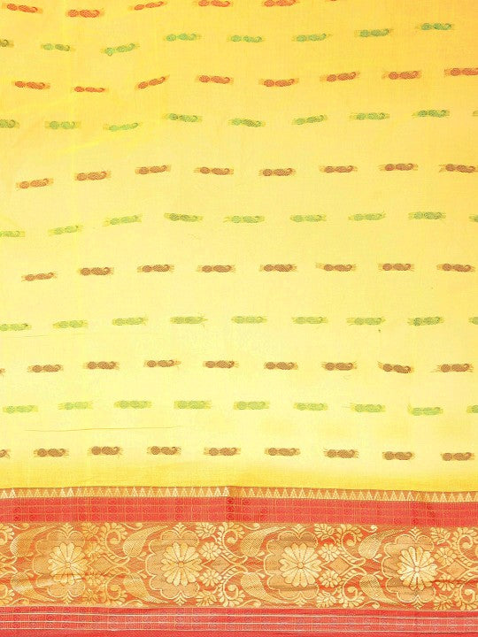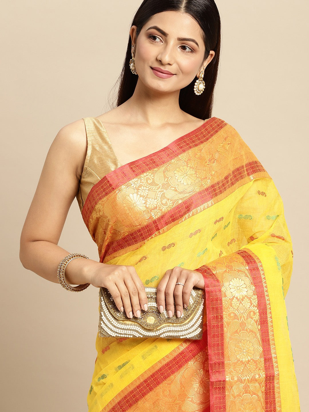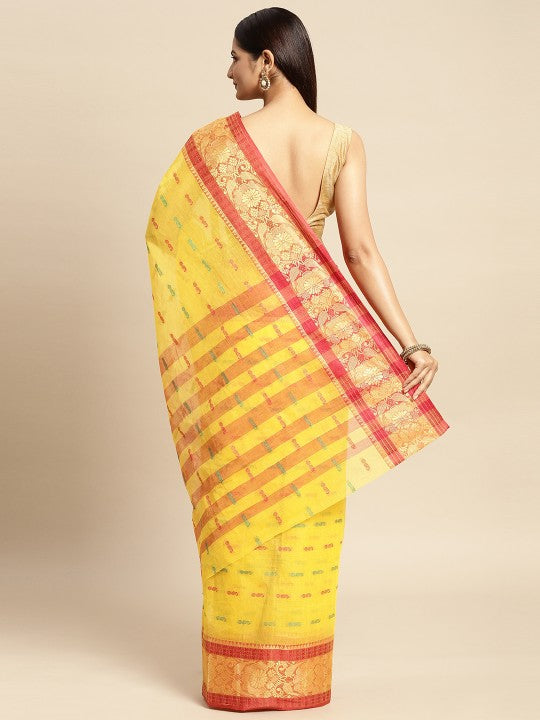 Yellow Ethnic Motifs Pure Cotton Taant Saree