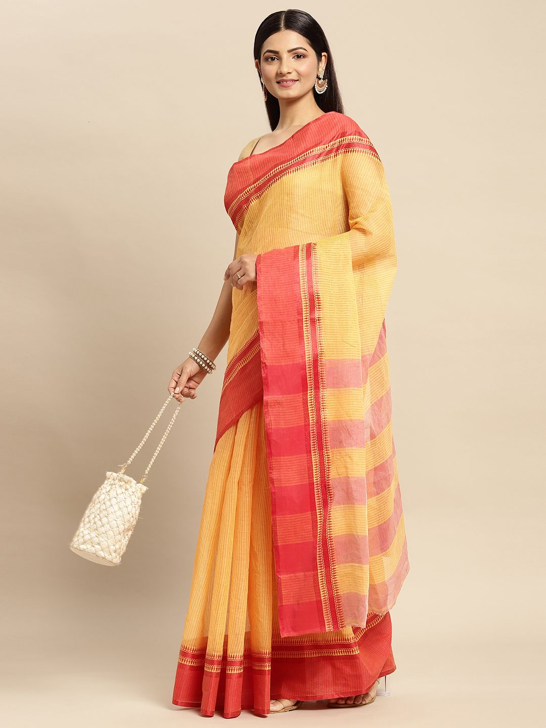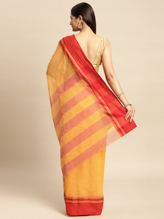 Yellow & Orange Woven Design Pure Cotton Taant Saree