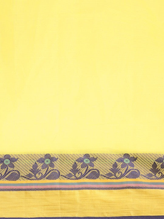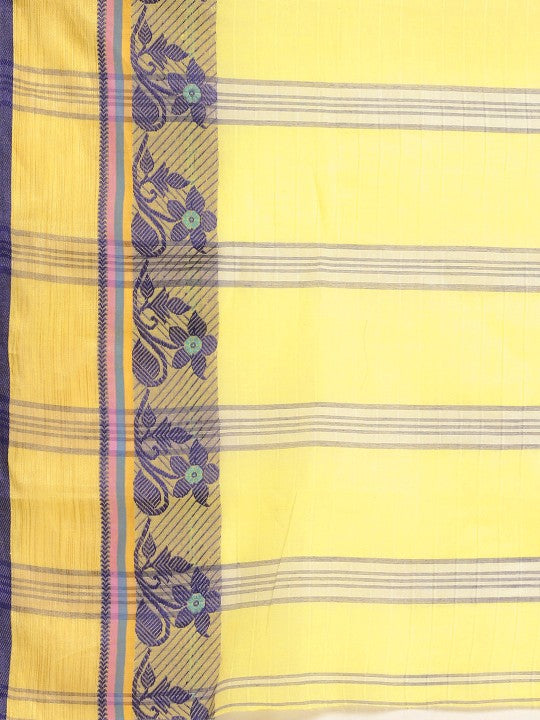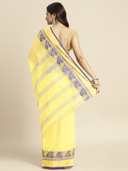 Yellow & Purple Ethnic Motifs Pure Cotton Taant Saree