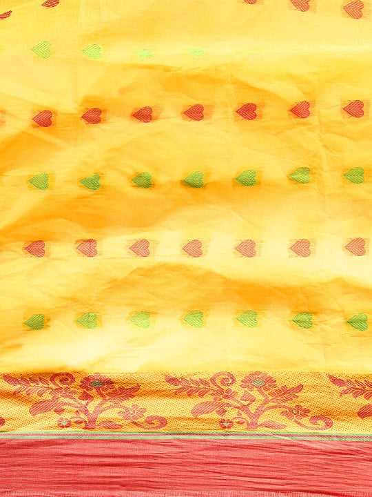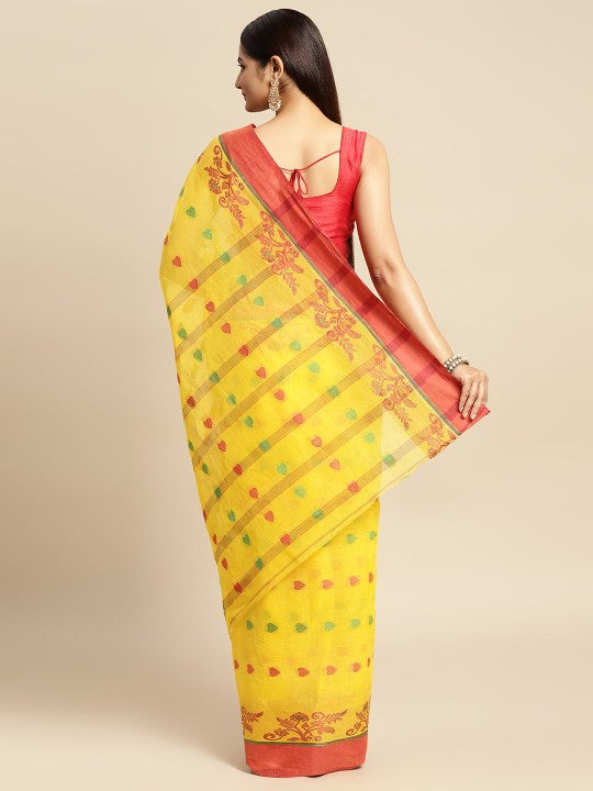 Yellow & Red Ethnic Motifs Pure Cotton Taant Saree