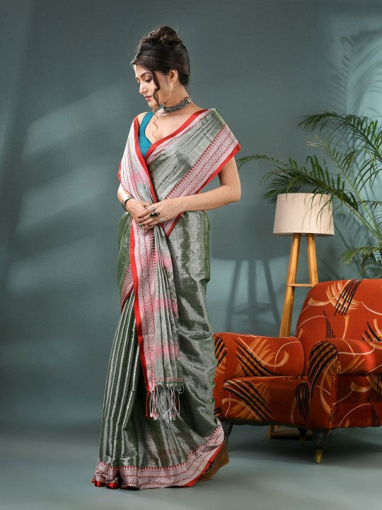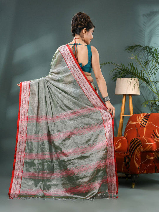 Buy DESH BIDESH Zari Silk Cotton Bandhani Saree - Sarees for Women from DESH BIDESH at Rs. 1081. Style ID: 35203138. This grey and grey bandhani saree features a woven design with a zari border. The saree comes with an unstitched blouse piece. The blouse worn by the model might be for modelling purpose only. Please check the image of the blouse piece to understand how the actual blouse piece looks like. The saree length is 5.5 metres plus 0.8 metre blouse piece. The width is approximately 1.06 metres. Made from Silk Cotton, it requires dry clean care.
