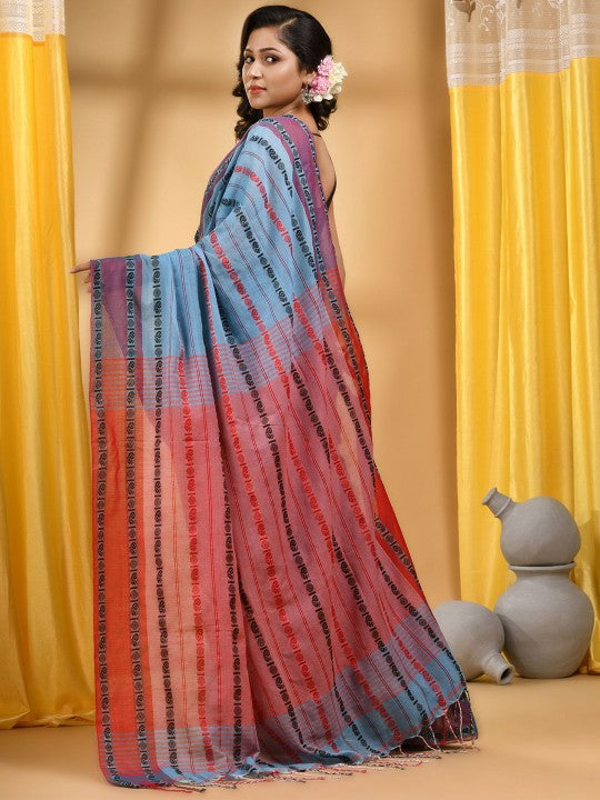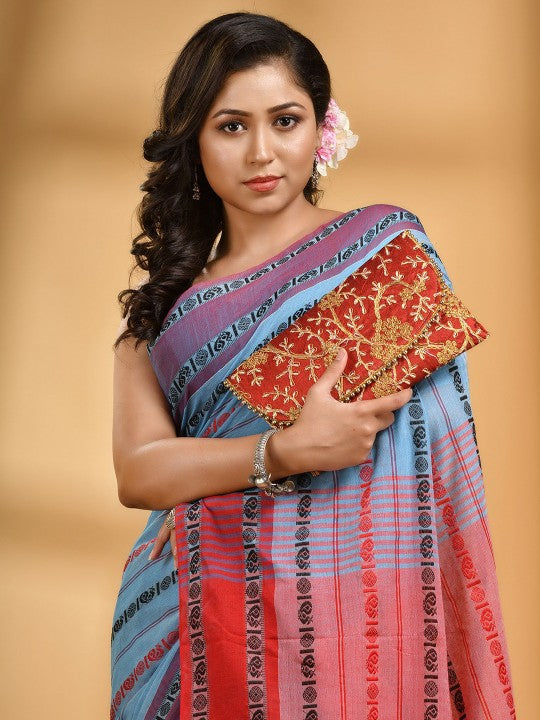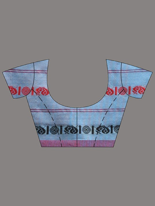 Elegant Blue & Red Woven Design Pure Cotton Saree for Women