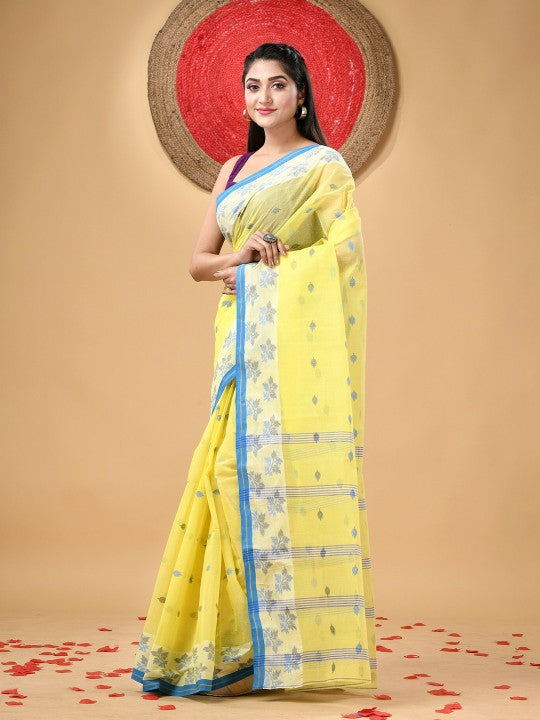 Ethnic Motifs Woven Design Pure Cotton Taant Saree for Women