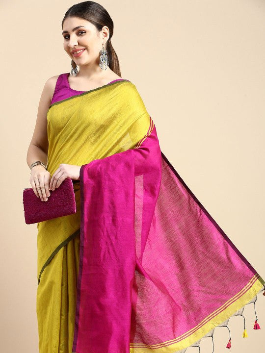 Tant Cotton Silk Saree With Blouse Piece (DB150919GHICHA3_Yellow & Red)
