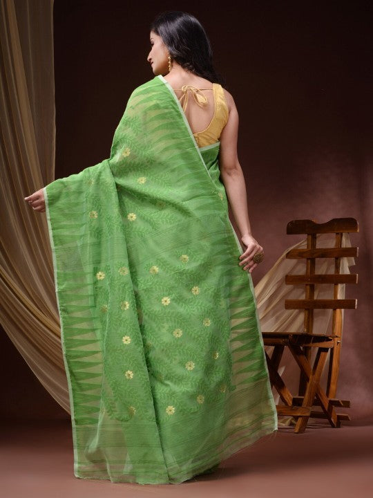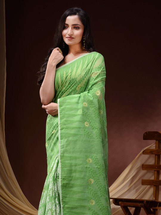 Tamarind Leaf Resham Dhakai Jamdani Pure Cotton Handloom Saree Design without Blouse Piece