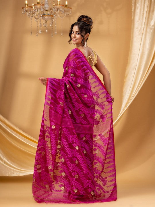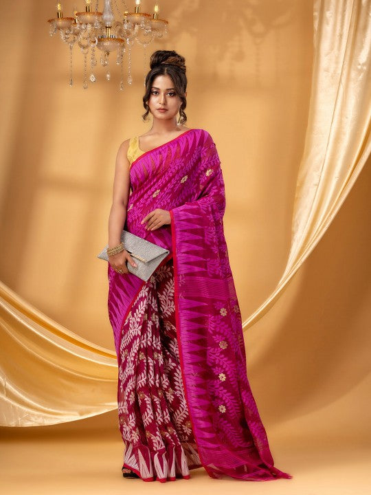Tamarind Leaf Resham Dhakai Jamdani Pure Cotton Handloom Saree Design without Blouse Piece
