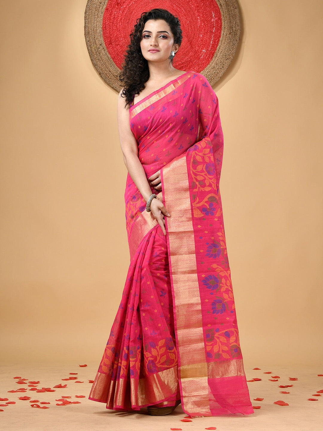 Exquisite Floral Woven Zari Cotton Silk Saree
