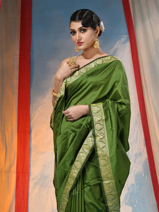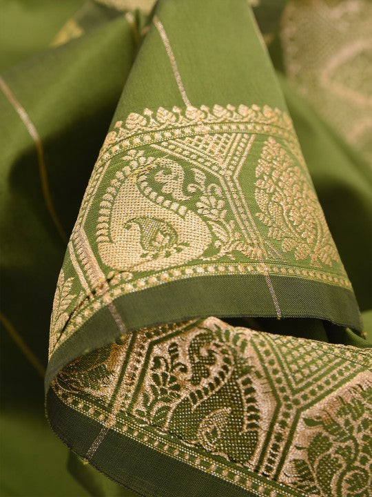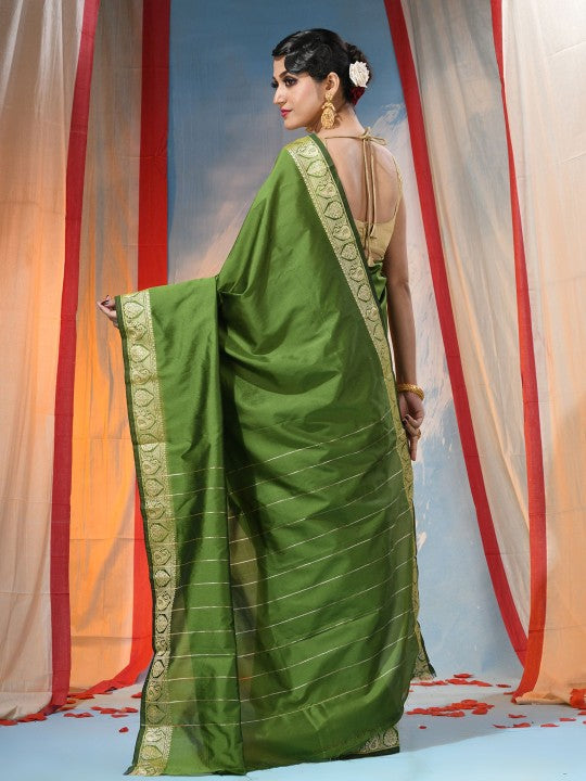 Exquisite Green Woven Zari Silk Blend Saree with Blouse Piece