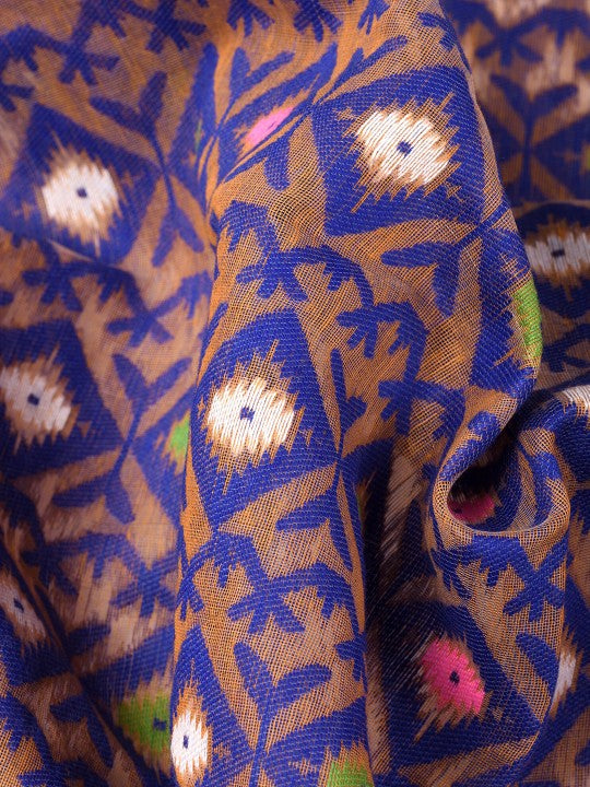 This exquisite Jamdani saree, crafted from pure cotton, exemplifies traditional Indian weaving artistry. The vibrant orange and blue hues are complemented by an intricate woven design, adding a touch of elegance. Its lightweight and breathable fabric ensures comfort for extended wear. The saree features a meticulously woven border, enhancing its aesthetic appeal. This piece is perfect for festive occasions or cultural gatherings, offering a blend of heritage and contemporary style. The pure cotton material ensures durability and a soft drape. It is an ideal choice for those who appreciate fine craftsmanship and traditional Indian textiles. The rich color combination makes it a versatile addition to any wardrobe.