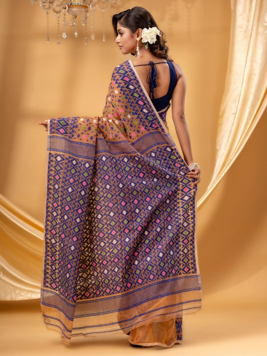 Hirokduti Resham Dhakai jamdani Bengal Pure Cotton Handloom Saree Whole Body Design without Blouse Piece