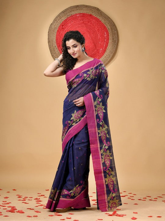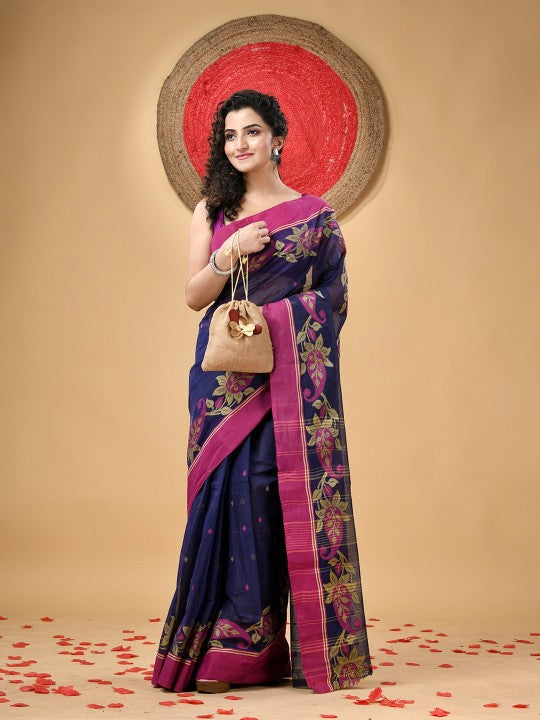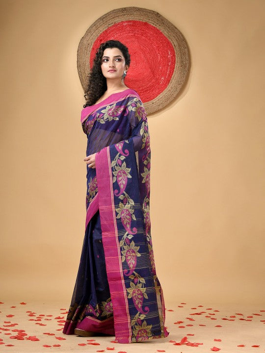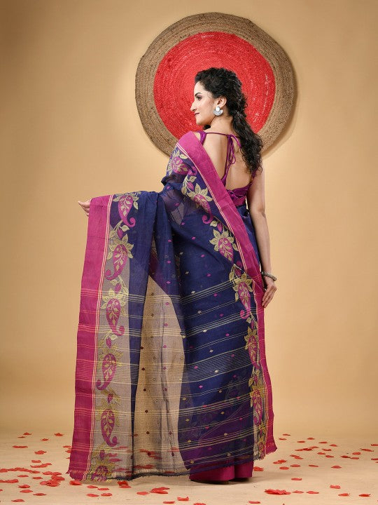 Exquisite Paisley Woven Design Pure Cotton Taant Saree for Women