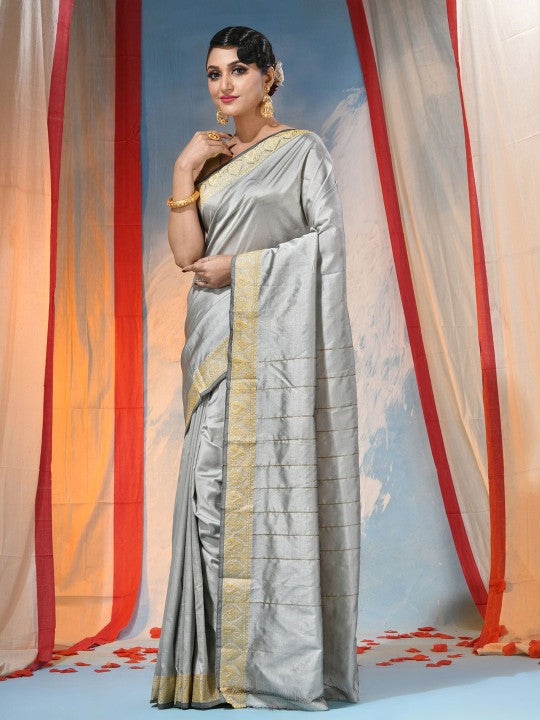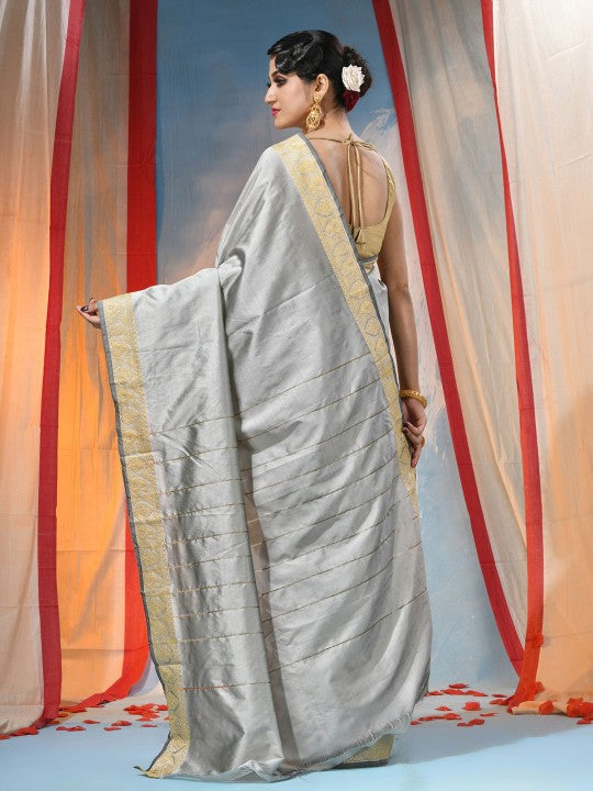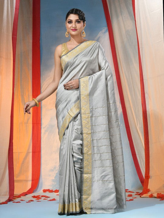 Discover the timeless elegance of the DESH BIDESH Ethnic Motifs Silk Blend Saree, a masterpiece of traditional Indian craftsmanship. This silver-toned saree features intricate woven design borders, adding a touch of sophisticated charm. Crafted from a luxurious silk blend fabric, it offers a graceful drape and comfortable wear for any special occasion. The saree is accompanied by an unstitched blouse piece, allowing for personalized tailoring to achieve a perfect fit. This elegant attire embodies cultural richness while providing contemporary comfort. It is an ideal choice for festivities, formal gatherings, or cultural events, ensuring a distinguished presence. The fabric composition ensures durability and ease of maintenance, making it a valuable addition to any discerning wardrobe. Its subtle sheen and detailed motifs reflect a heritage of fine textile artistry. This saree promises to enhance your ethnic ensemble with its classic appeal and superior quality.