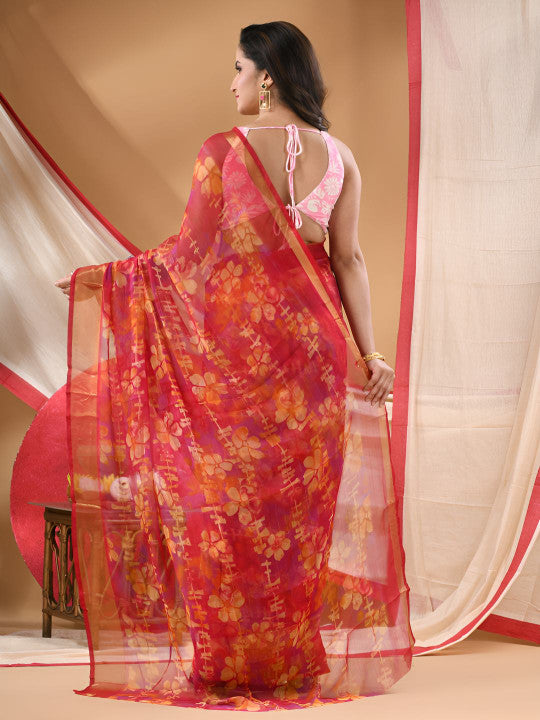 This exquisite Red Bandhani Saree from DESH BIDESH features a captivating floral print, adding a touch of traditional elegance. It is beautifully adorned with a rich zari border, enhancing its festive appeal. Crafted from high-quality Poly Chiffon fabric, this saree offers a graceful drape and comfortable wear. The design is perfect for various celebratory occasions, blending classic Indian artistry with contemporary style. It requires dry cleaning to maintain its intricate details and fabric quality. This saree embodies cultural richness and sophisticated design, making it a valuable addition to your ethnic wardrobe. Its vibrant colour and delicate pattern ensure you stand out. Ideal for weddings, festivals, or special gatherings, this saree promises both comfort and grandeur. The lightweight chiffon ensures ease of movement throughout the event. Pair it with your favourite accessories for a complete traditional look.