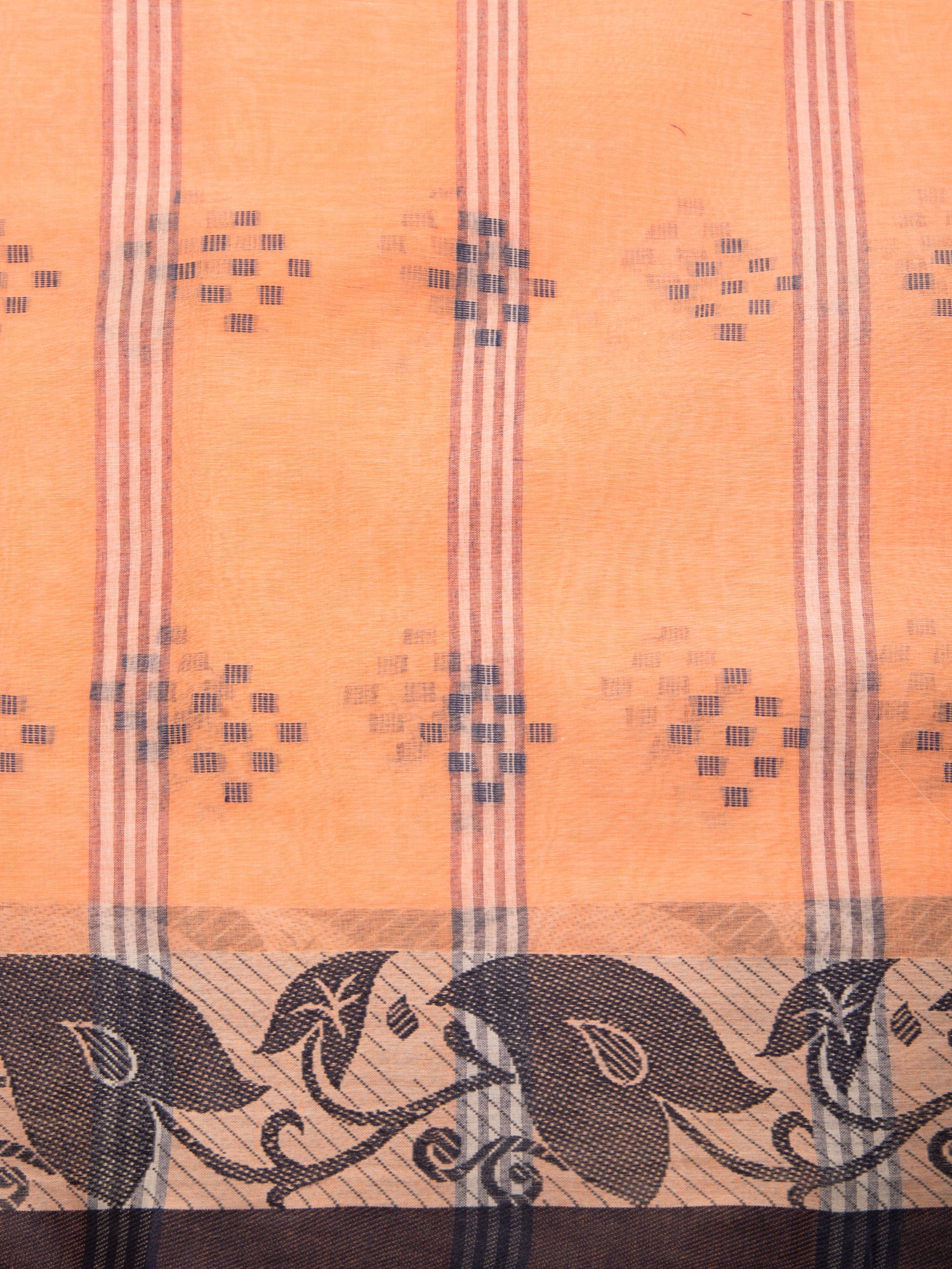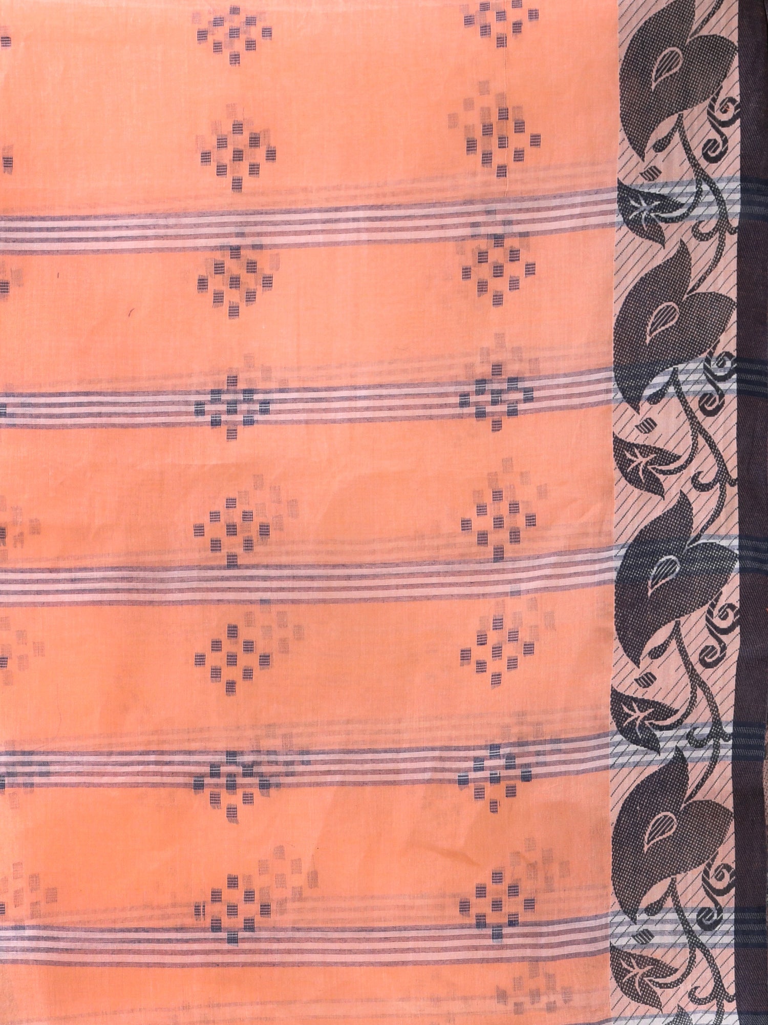 Discover the enduring charm of traditional Indian craftsmanship with the DESH BIDESH Women's Handloom Cotton Tant Saree in the graceful "Parnashree" design.. This saree is a perfect blend of tradition and comfort, crafted with pure soft cotton fabric ideal for daily wear or ethnic occasions.