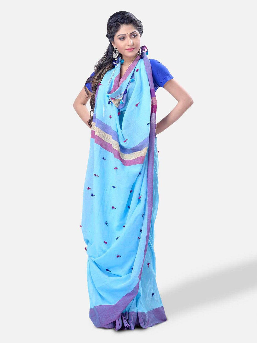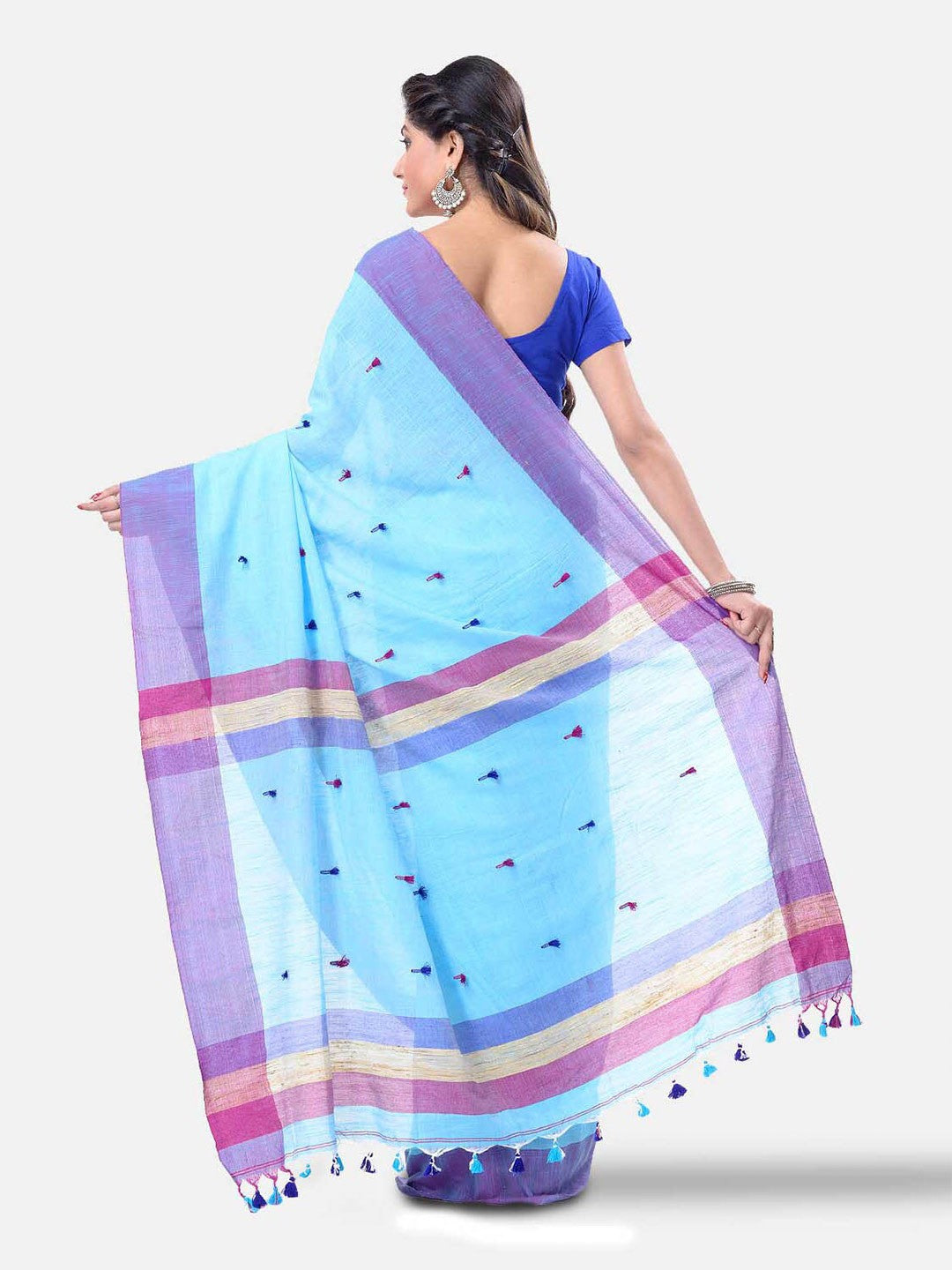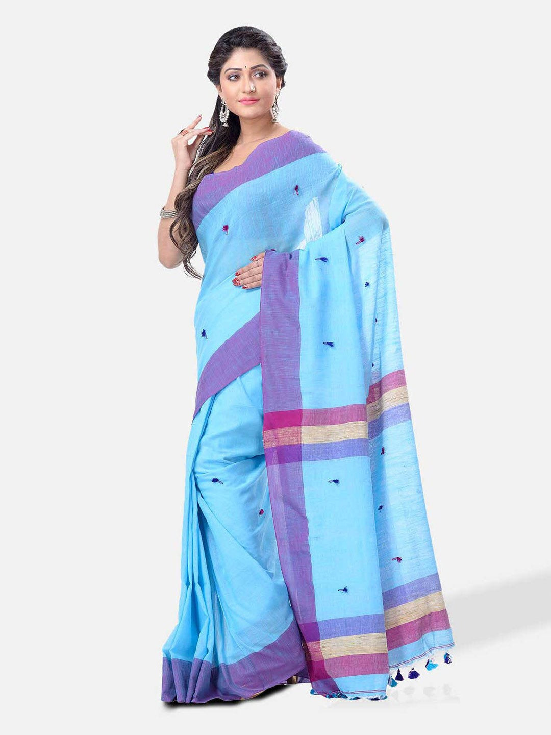 Woven Design Pure Cotton Traditional Taant Saree₹1367Price DetailsMaximum Retail PriceRs. 7199(Incl. of all taxes)Selling PriceRs. 1367(Incl. of all taxes)MRP ₹7199(81% OFF)inclusive of all taxesThis product is currently sold outProduct DetailsProduct Details Design Details Blue and purple taant sareeWoven design saree with solid borderThe saree comes with an unstitched blouse pieceThe blouse worn by the model might be for modelling purpose only. Check the image of the blouse piece to understand how the actual blouse piece looks like.Size & FitLength: 5.5 metres plus 0.8 metre blouse piece Width: 1.06 metres (approx.)Material & CarePure CottonDry CleanSpecificationsProduct Code: 23446002Seller: DESH BIDESH View Supplier Information
