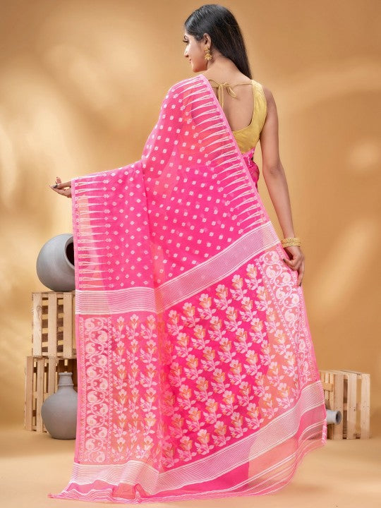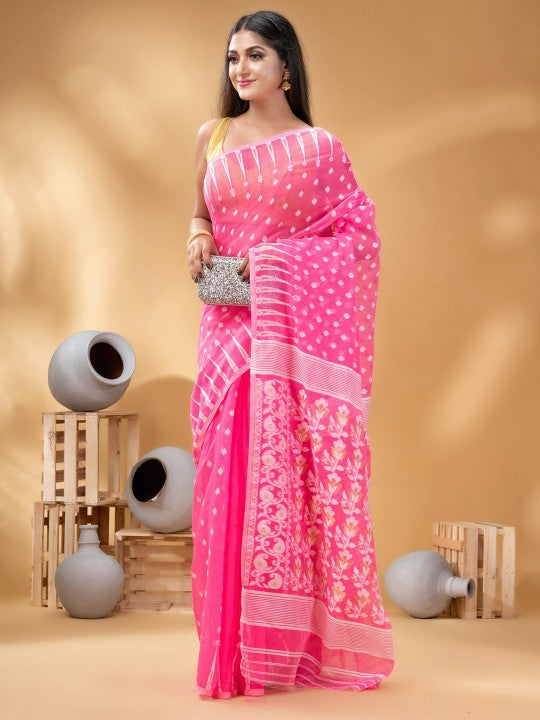 Resham Dhakai Jamdani Bengal Pure Cotton Handloom Saree Diamond Queen Design