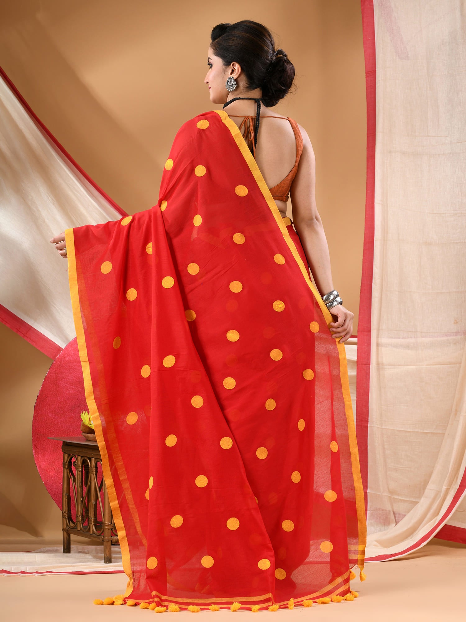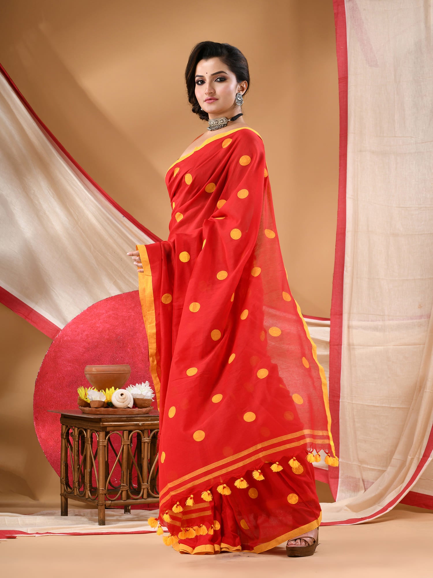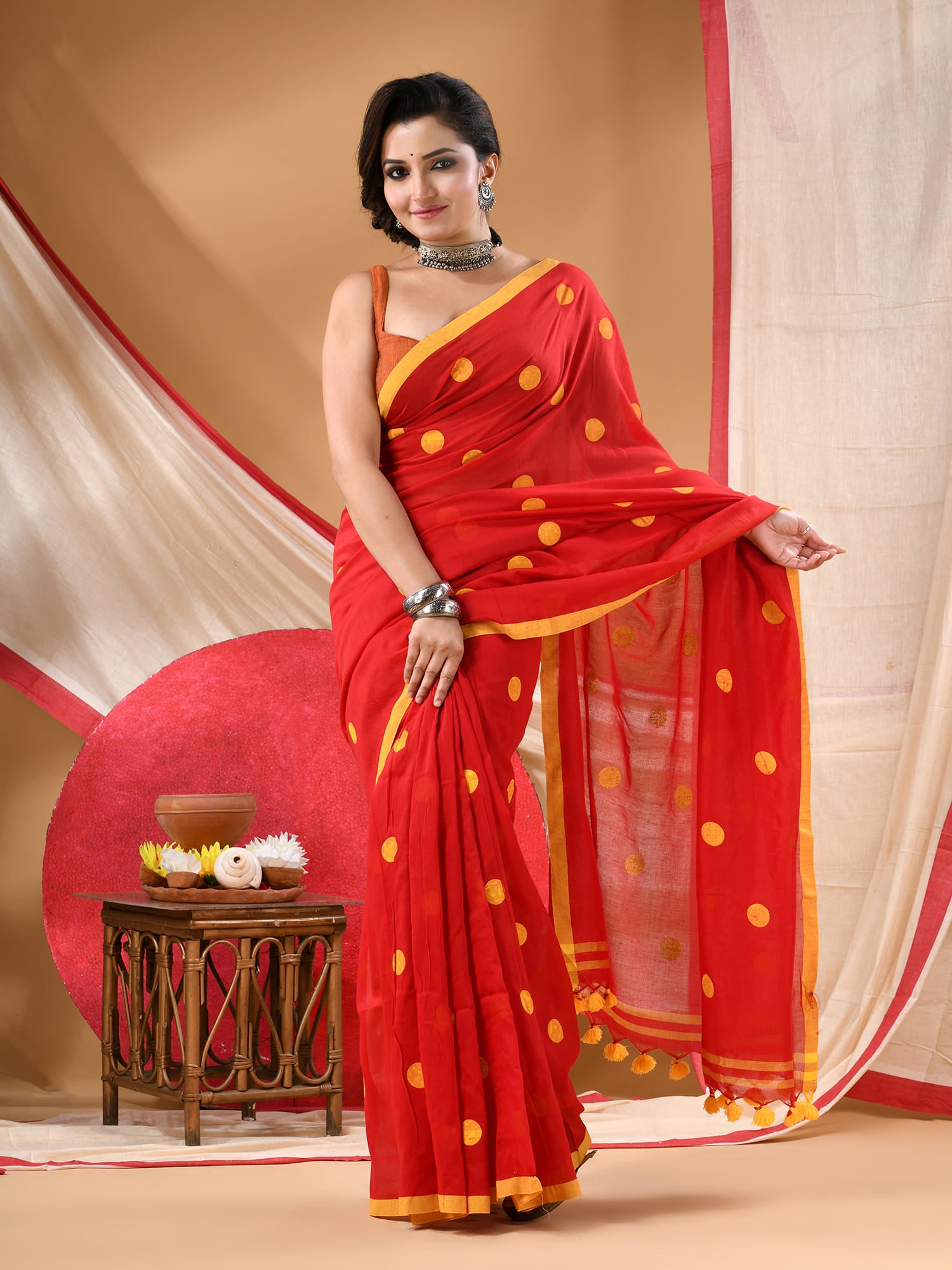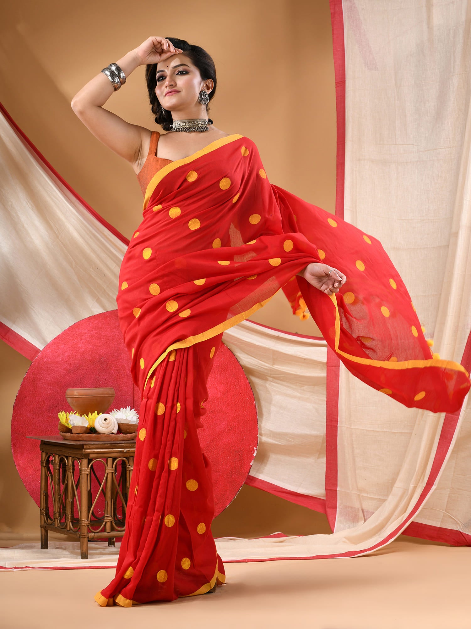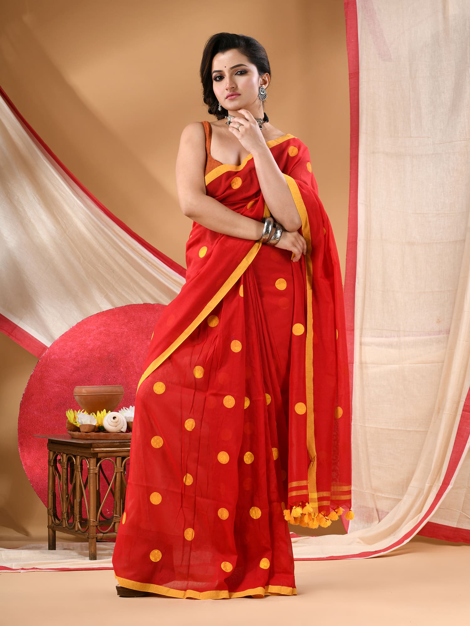 Women cotton handloom mulmul cotton sarees mul cotton sarees for women latest, Nazakat design batik print bandhani malmal linen office daily, party, wear sarees for women (Red Yellow)
