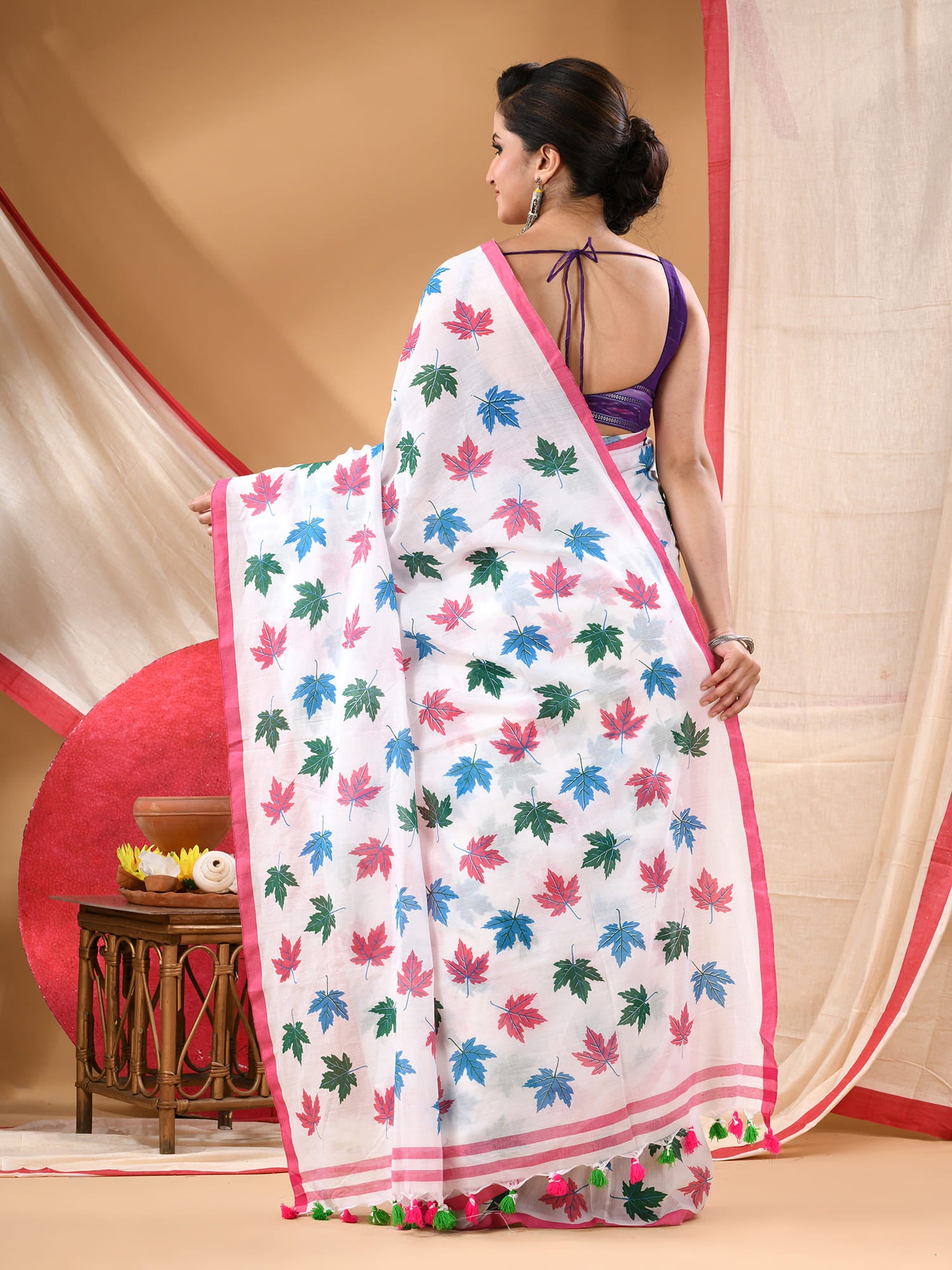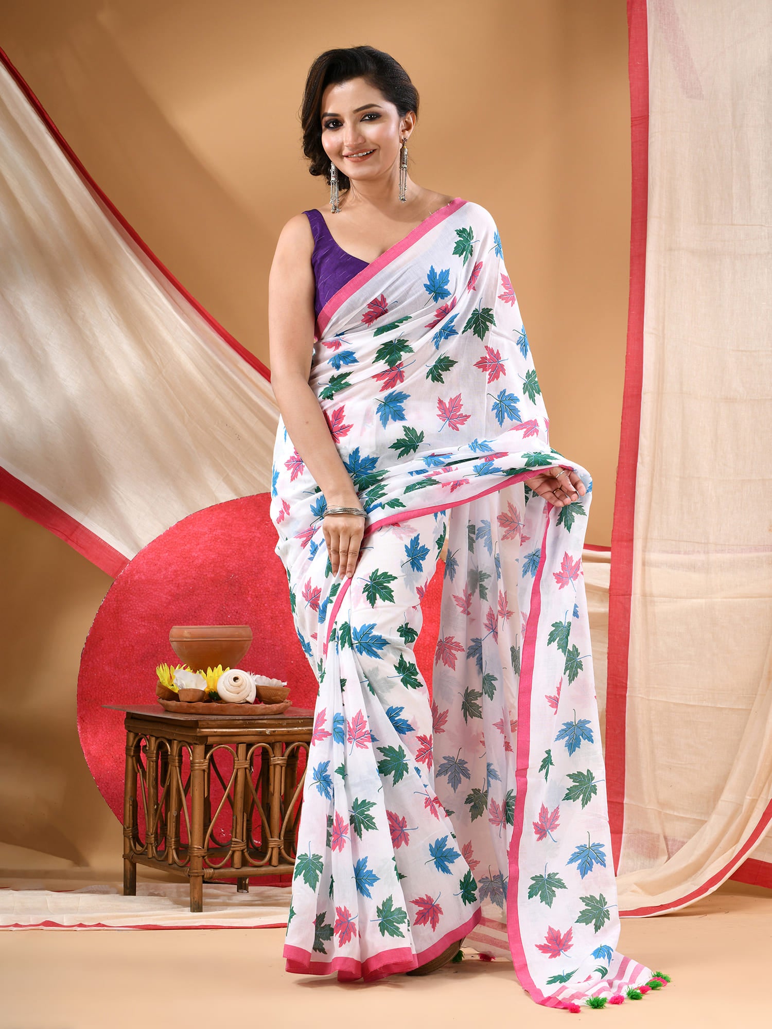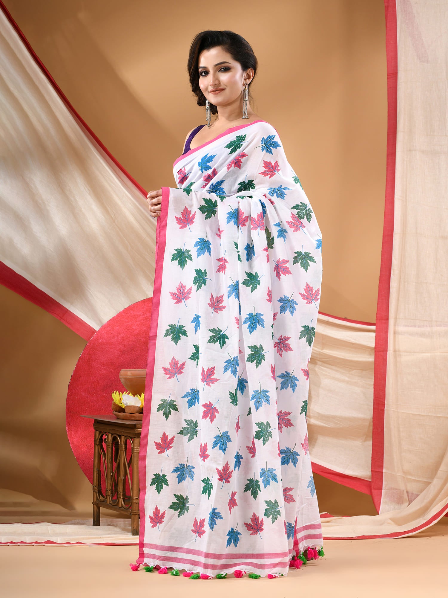 Women cotton handloom mulmul cotton sarees mul cotton sarees for women latest, Patta e Ishq design batik print bandhani malmal linen office daily, party, wear sarees for women (White)