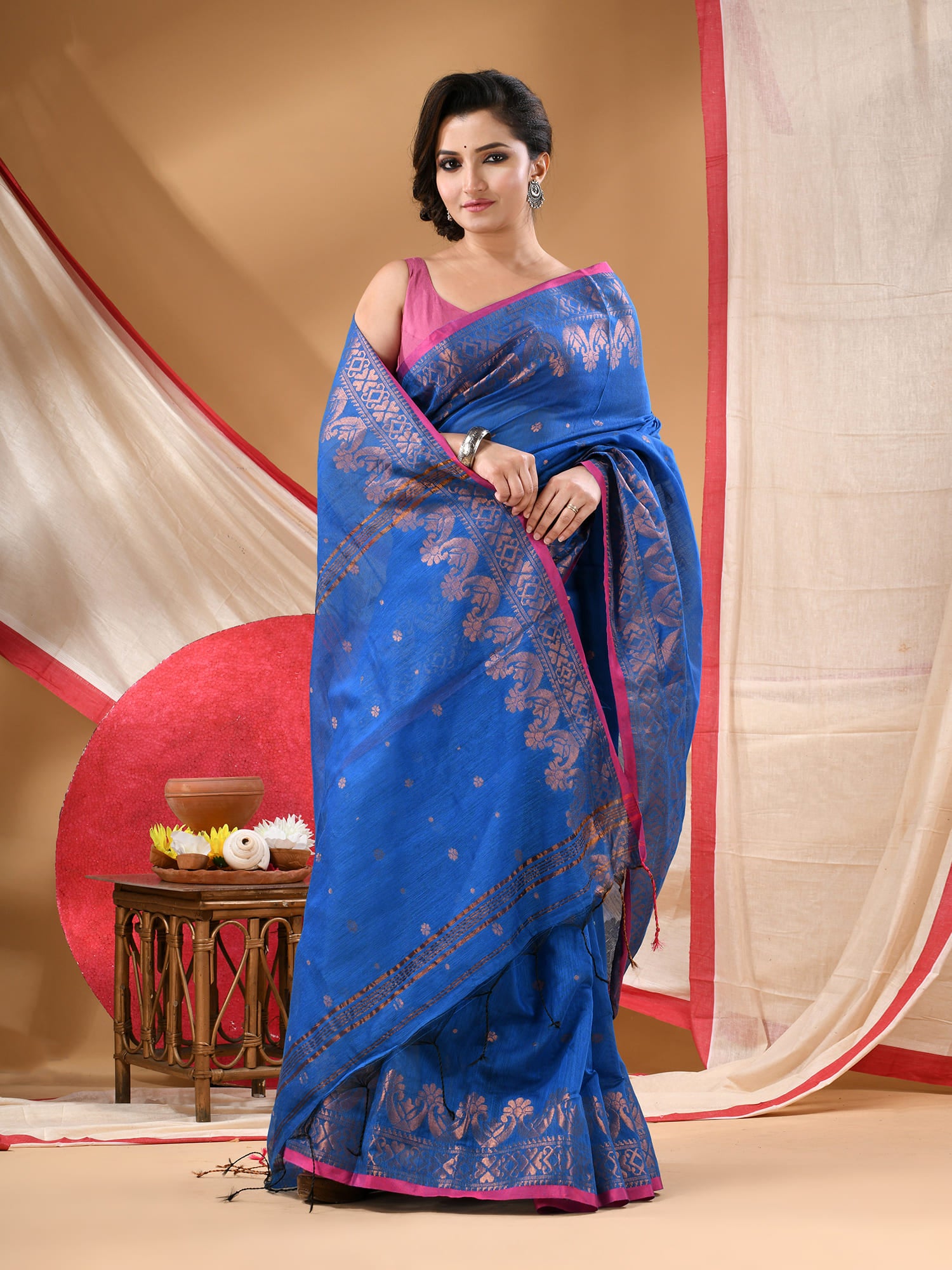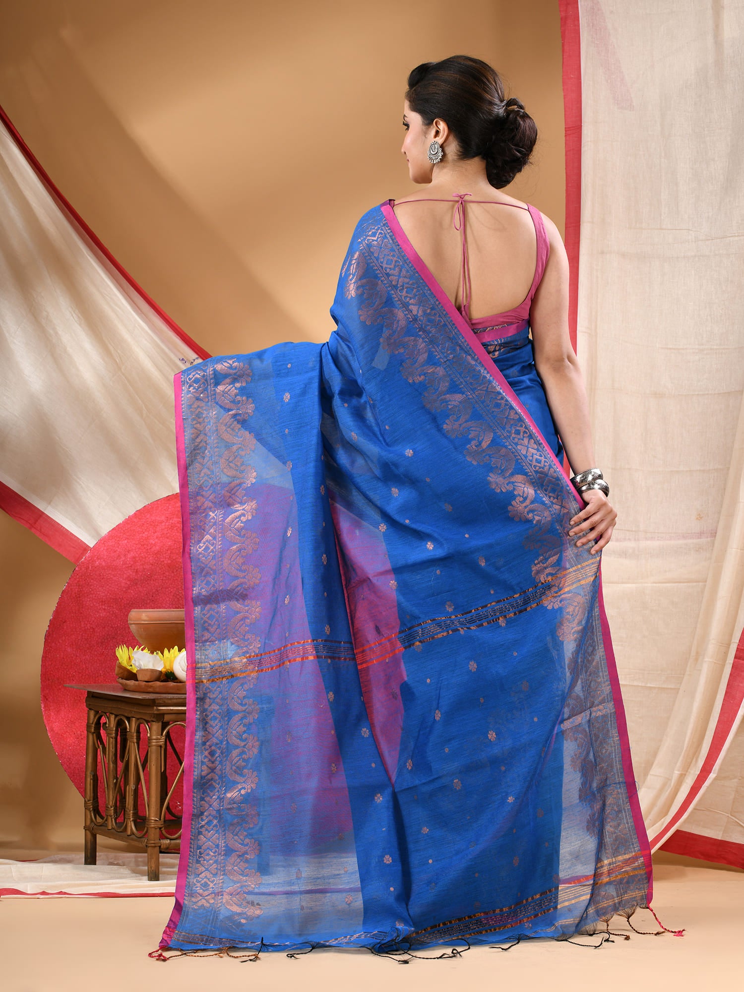 Women cotton silk tant handloom saree mysore party, wear sarees latest, design wedding, kanjivaram georgette chiffon saree soft silk cotton Senzia design sarees for women (Royal Blue)