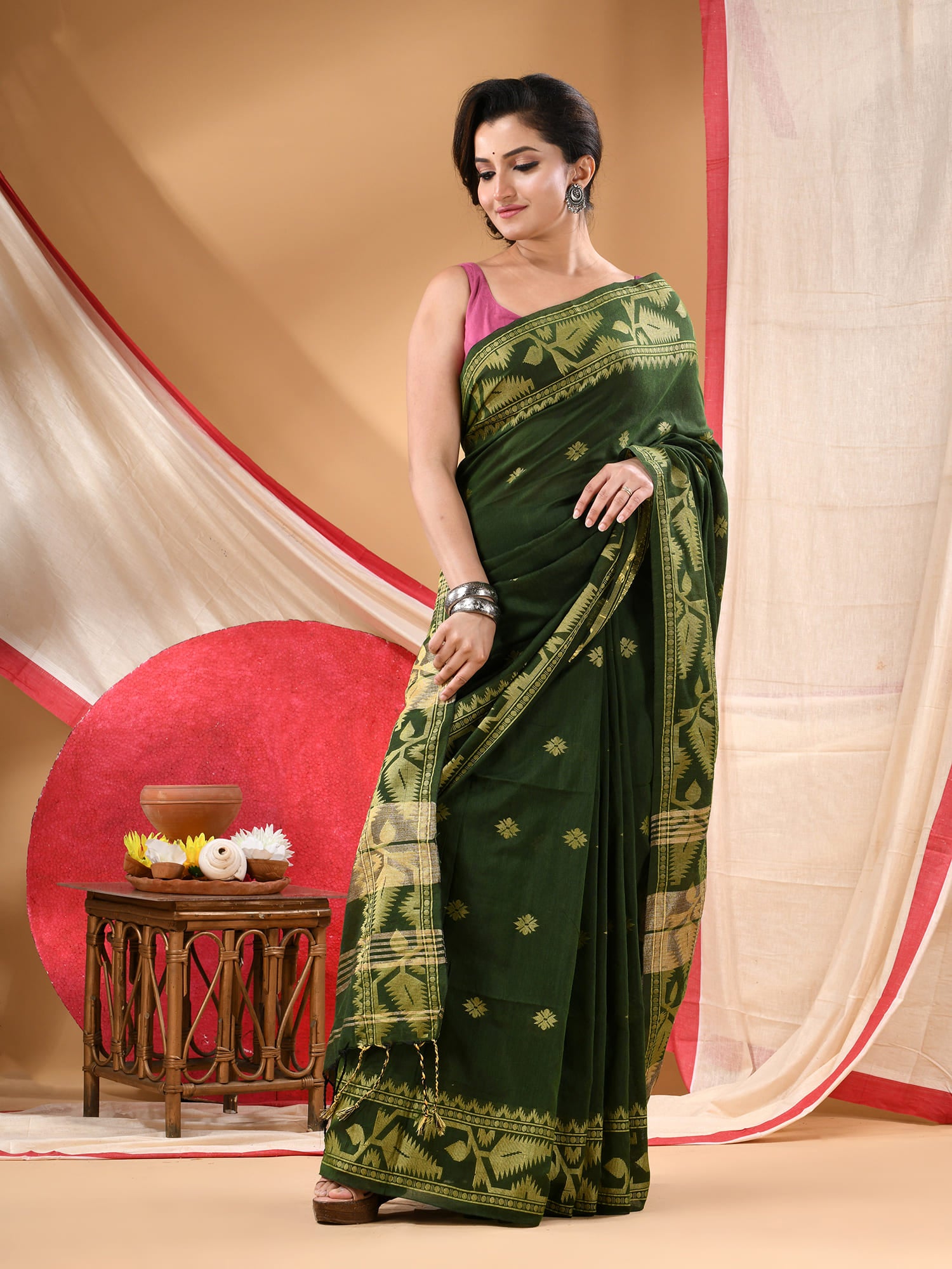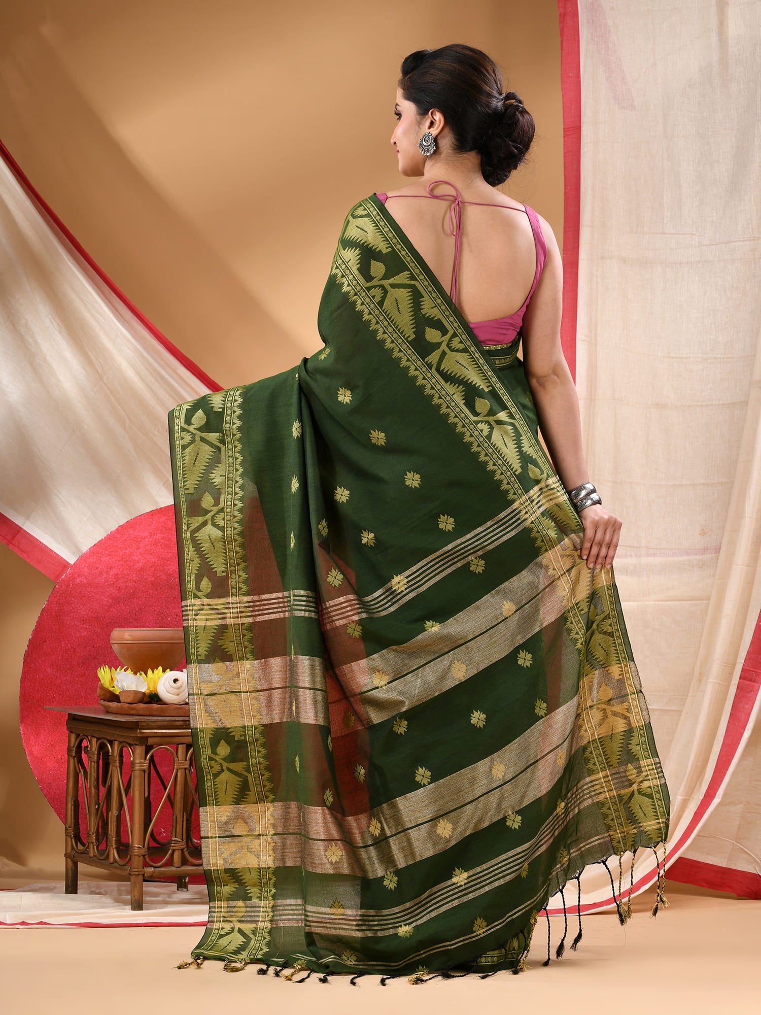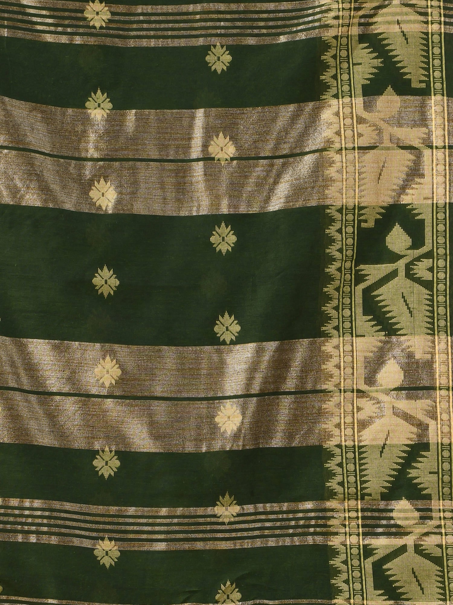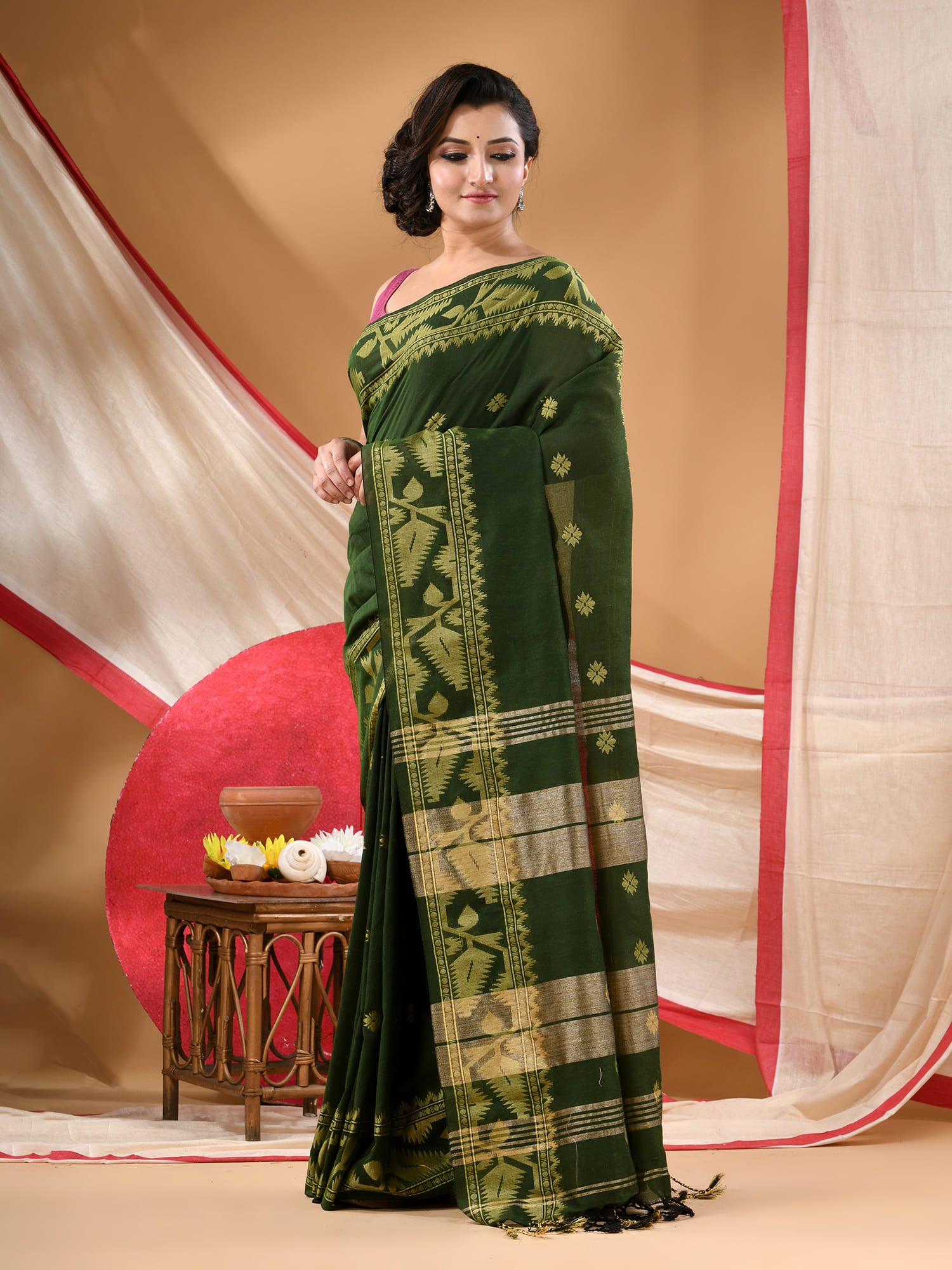 Women cotton silk tant handloom saree mysore party, wear sarees latest, design wedding, ready wear georgette chiffon saree soft silk cotton Taarini design sarees for women (Dark Green)