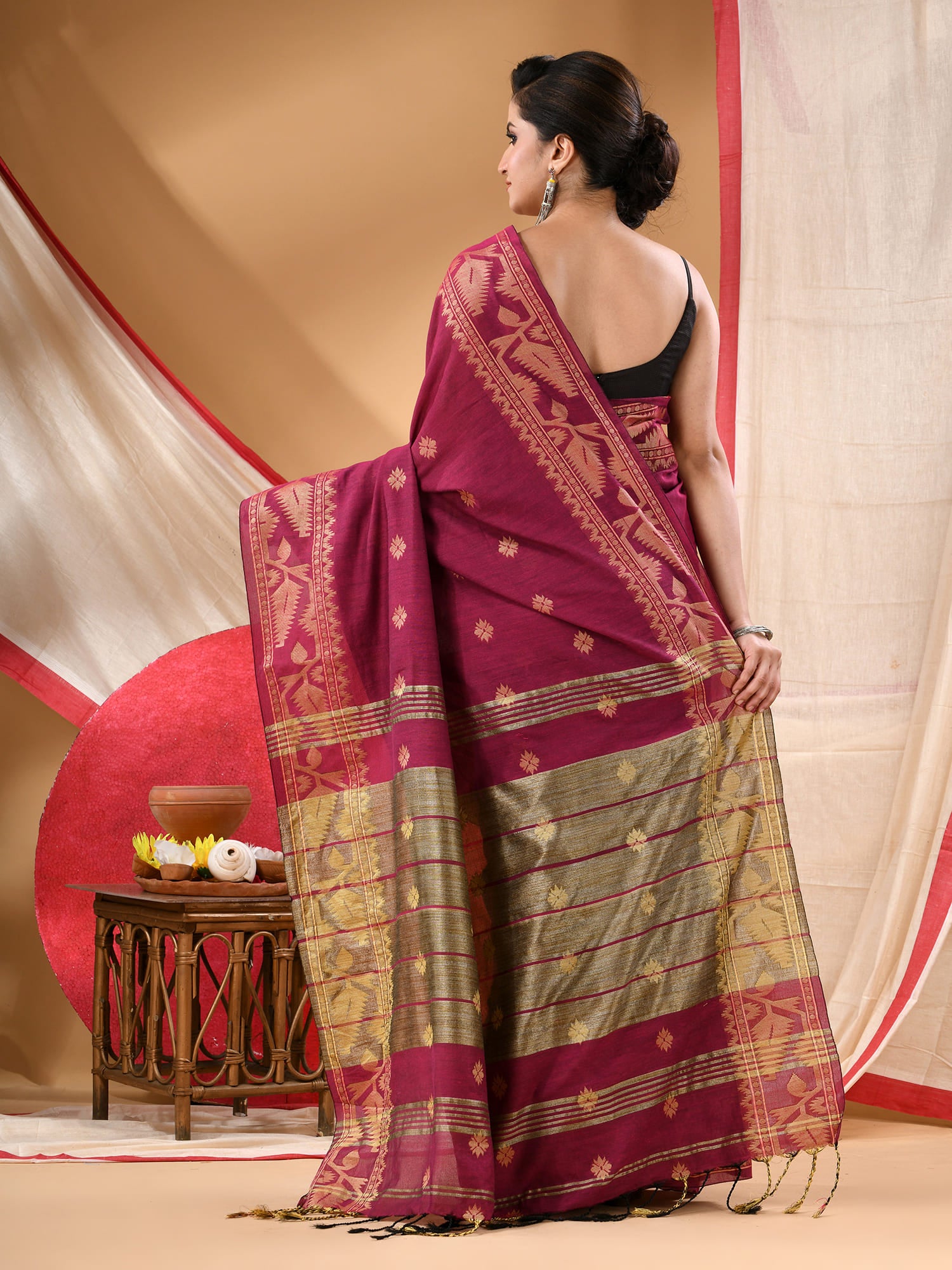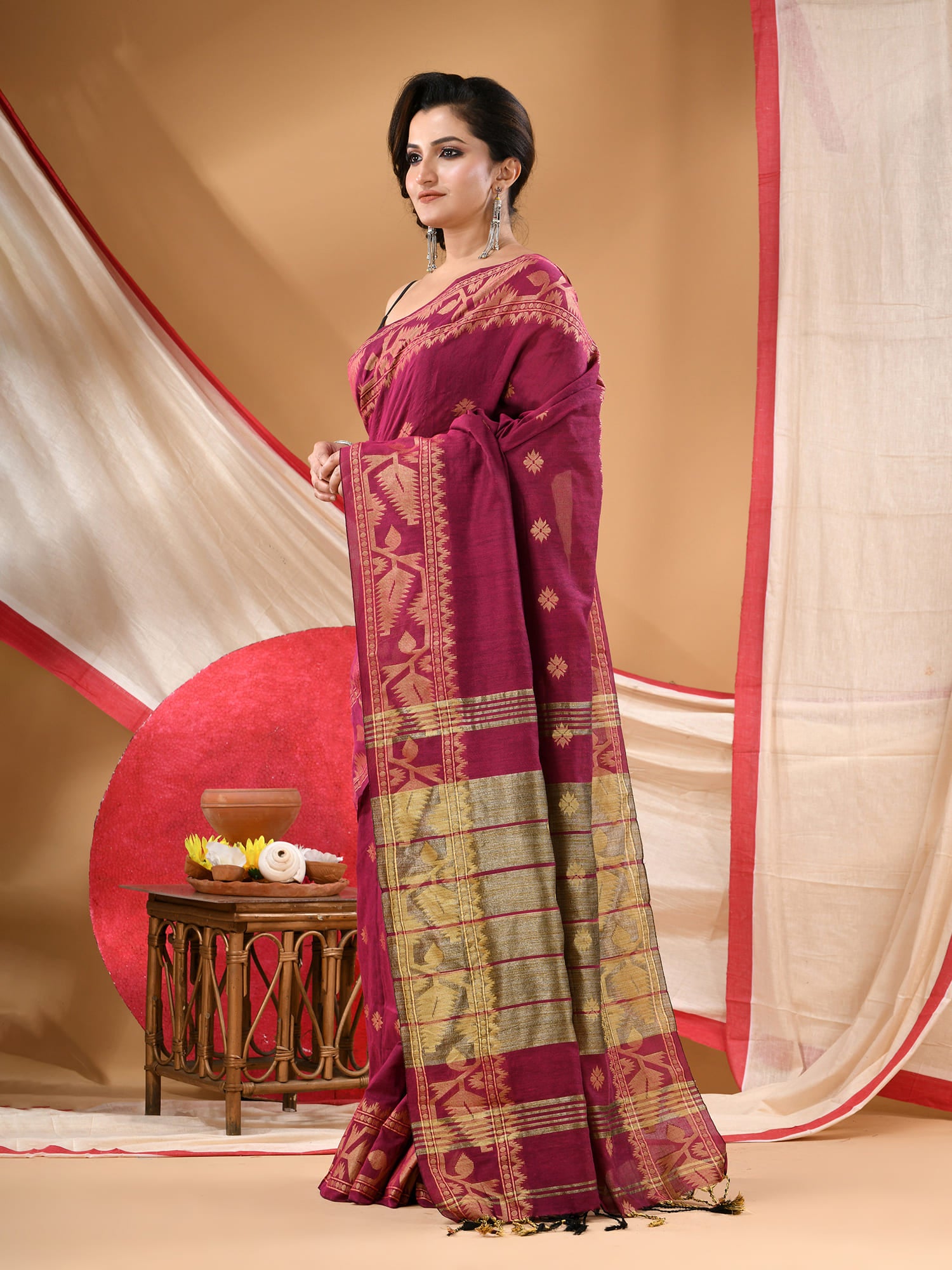 Women cotton silk tant handloom saree mysore party, wear sarees latest, design wedding, ready wear georgette chiffon saree soft silk cotton Taarini design sarees for women (Pink)