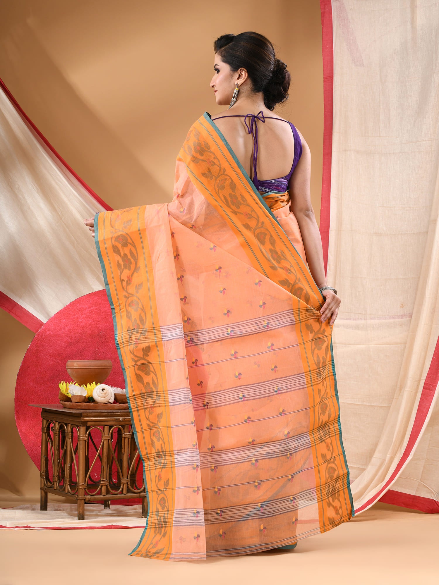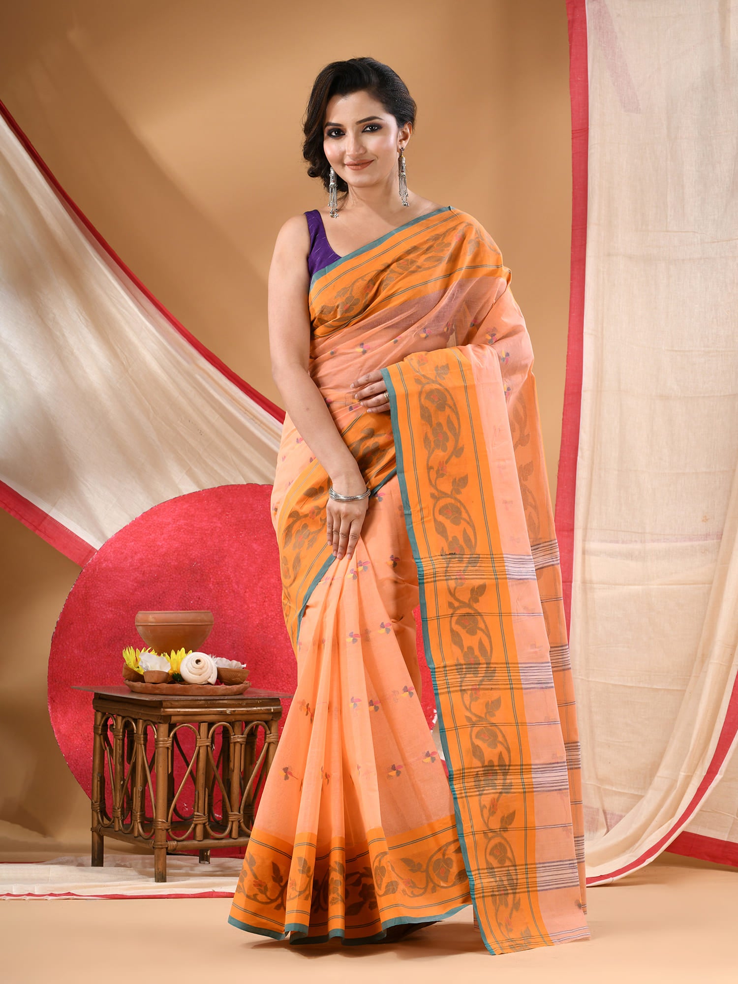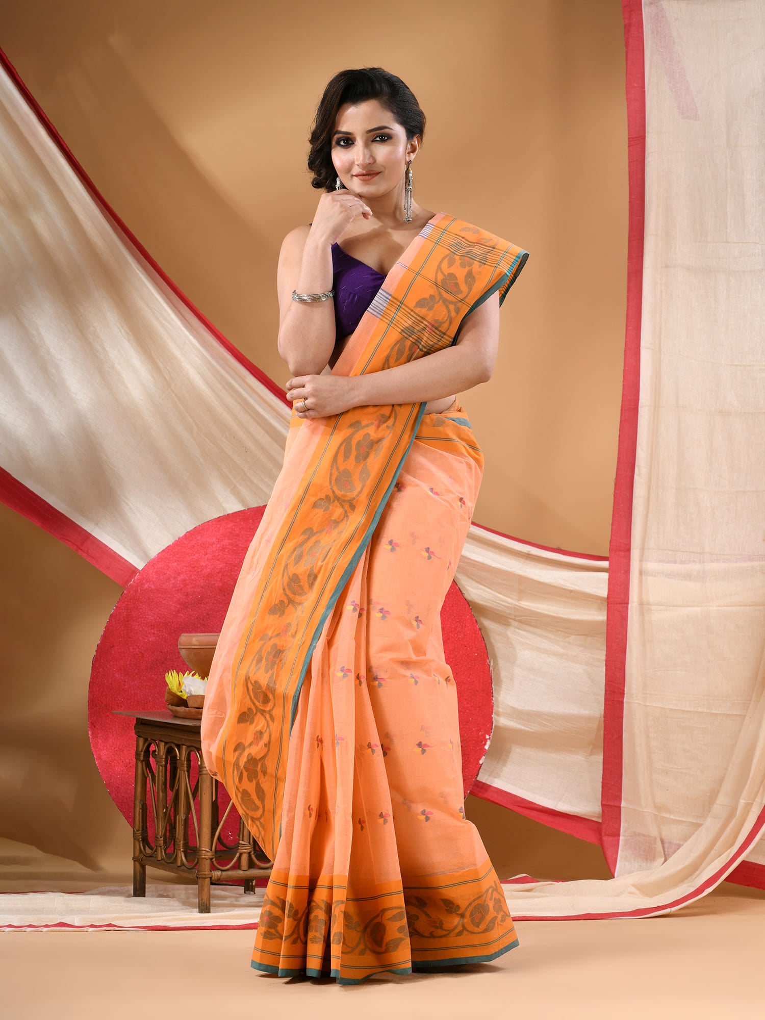 Women Tant cotton saree for woman party, wear handloom sarees for women cotton georgette chettinad cotton silk sarees for women latest, Vasantika design (Orange)