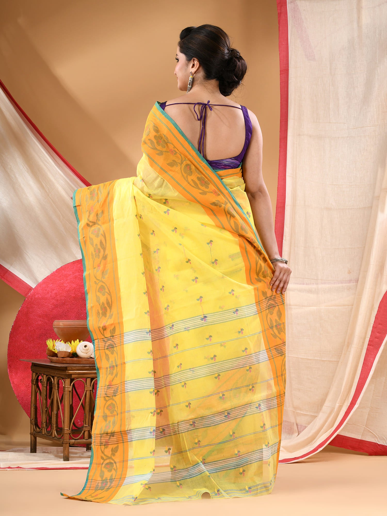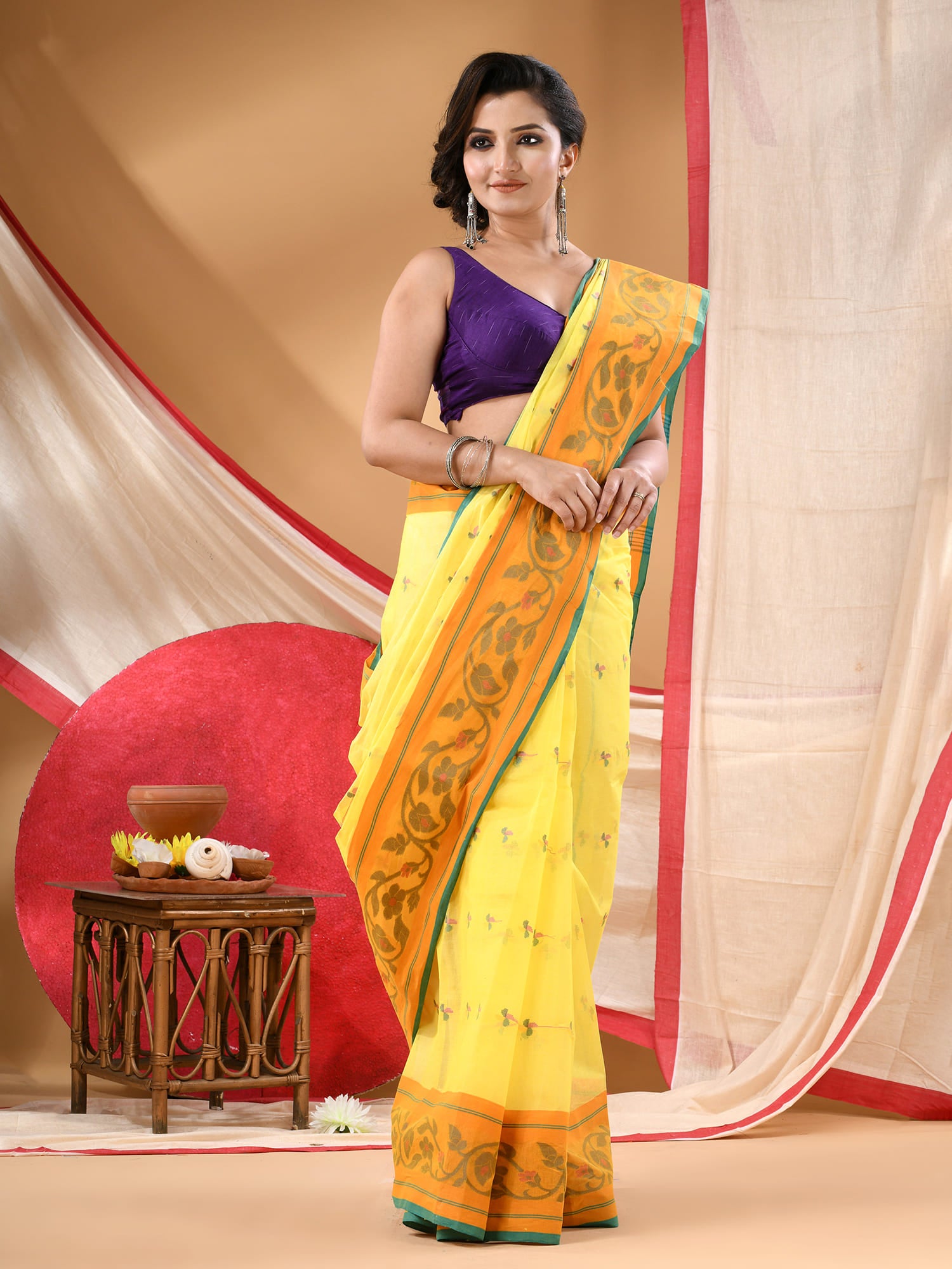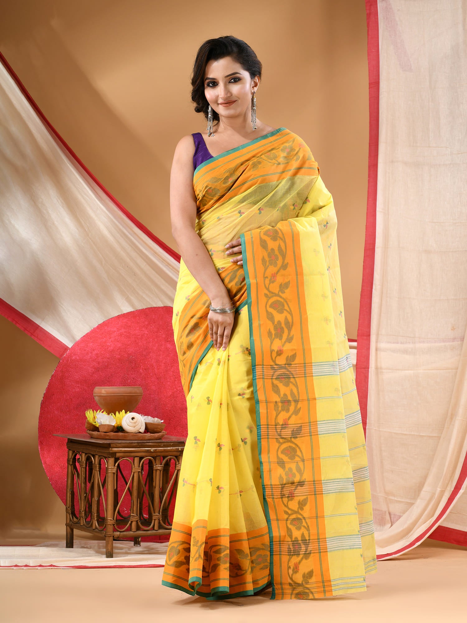 Women Tant cotton saree for woman party, wear handloom sarees for women cotton georgette chettinad cotton silk sarees for women latest, Vasantika design (Yellow)