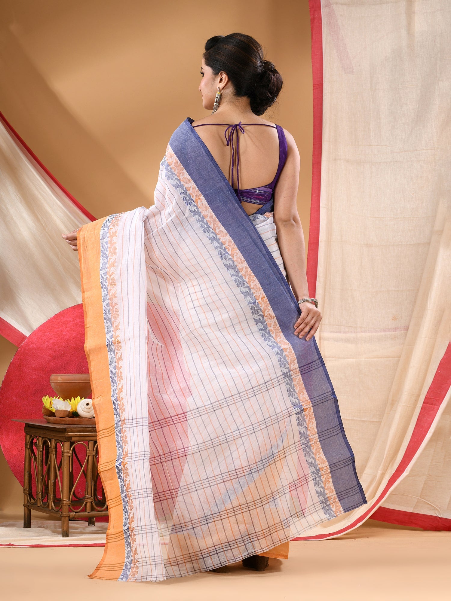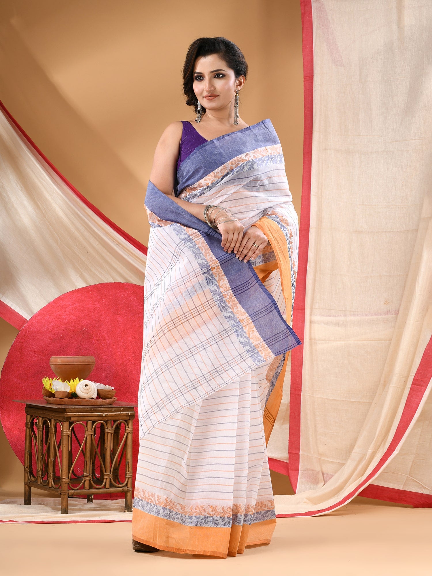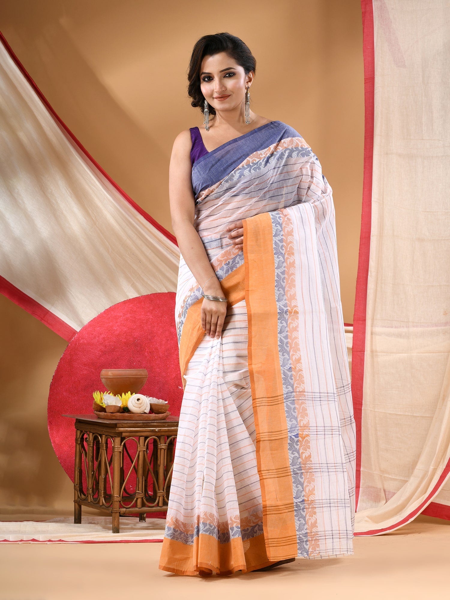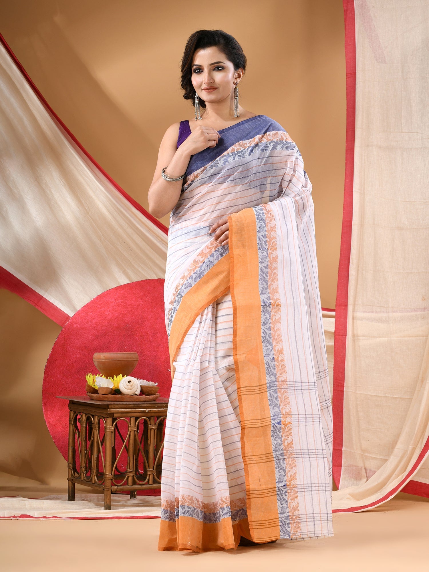 Women Tant cotton saree for woman party, wear sarees cotton georgette handloom wedding new chiffon collection sarees for women latest, Chitralekha design (Blue Orange)
