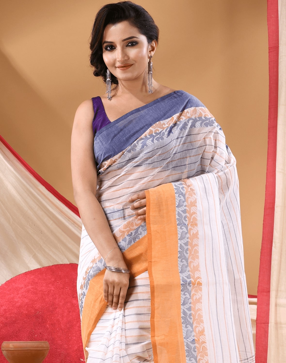 Step into elegance with this Pure Cotton Tant Saree, a classic from Bengal that brings together tradition and modern style. Known for its lightweight drape and breathable texture, this saree is part of the tant sarees for women collection that is always in trend. Whether you are looking for tant cotton sarees for women, cotton saree for woman, or pure cotton sarees, this piece is crafted to suit every occasion. Designed as part of the cotton handloom sarees new collection, this saree celebrates the artistry of weavers who create timeless patterns. From handloom sarees for women and jamdani sarees for women to chettinad cotton sarees and cotton linen sarees for women, each drape is a mark of heritage. This saree also resonates with the charm of chanderi silk sarees new collection and the richness of cotton pure soft cotton silk sarees for women. Perfect as party wear sarees for women latest, design, it can also be styled as a ready to wear saree or even a stitched saree, making it easy to wear for functions and celebrations. If you love styles like banarasi saree for women, banarasi georgette saree, georgette saree, or chiffon saree for women, this saree offers the same grace with the comfort of cotton. A true sari for women who admire both elegance and practicality, this saree is versatile enough for festive wear, casual outings, or a ready to wear saree for wedding, function. It beautifully complements the latest, fashion, standing strong among fancy sarees for women latest, design, cotton saree for women latest, design, and the evergreen charm of pure cotton silk saree collections. Bring home this Pure Cotton Tant Saree and embrace the perfect blend of tradition, comfort, and the latest, design sarees for women – a must-have in every ethnic wardrobe.