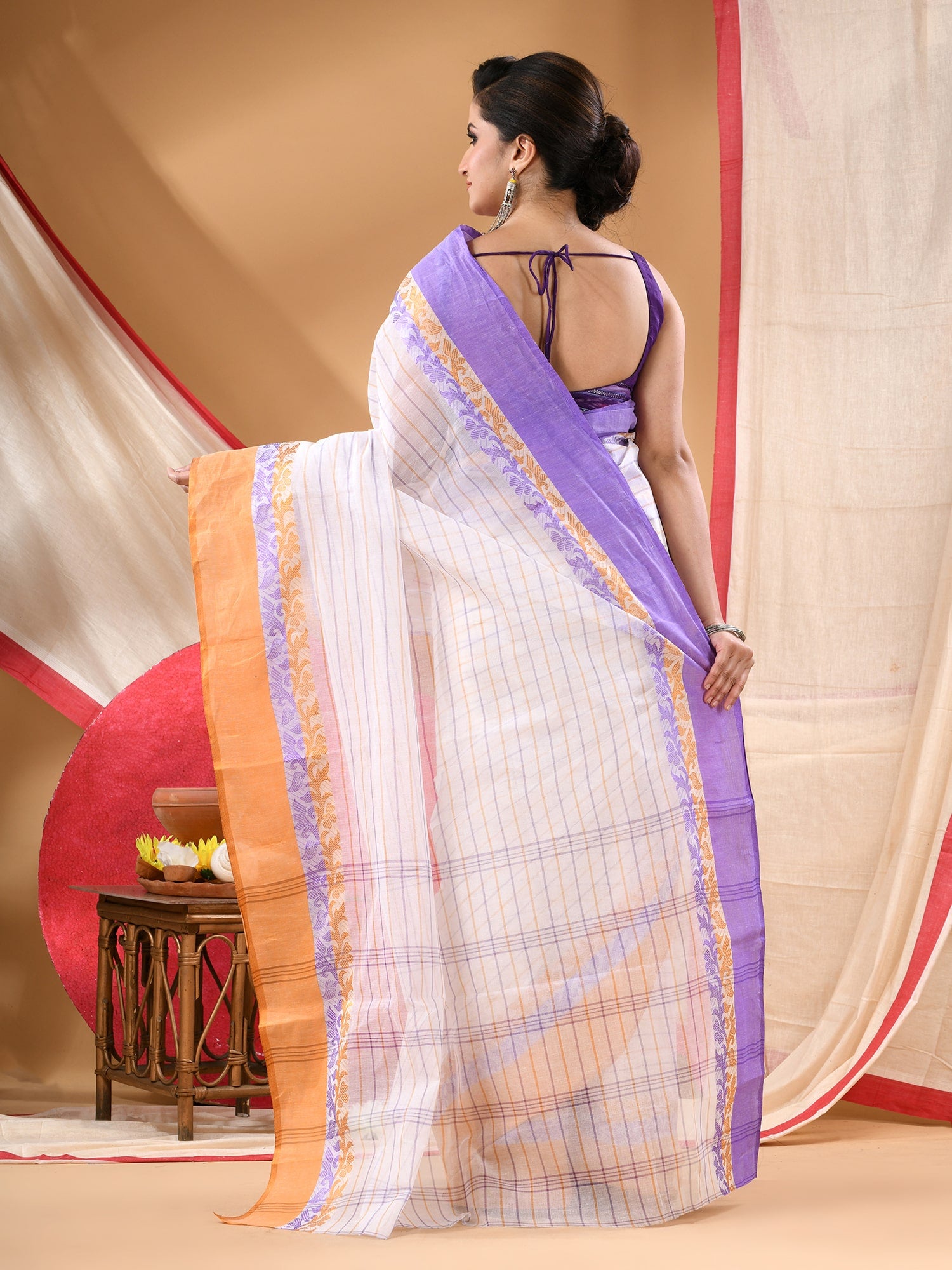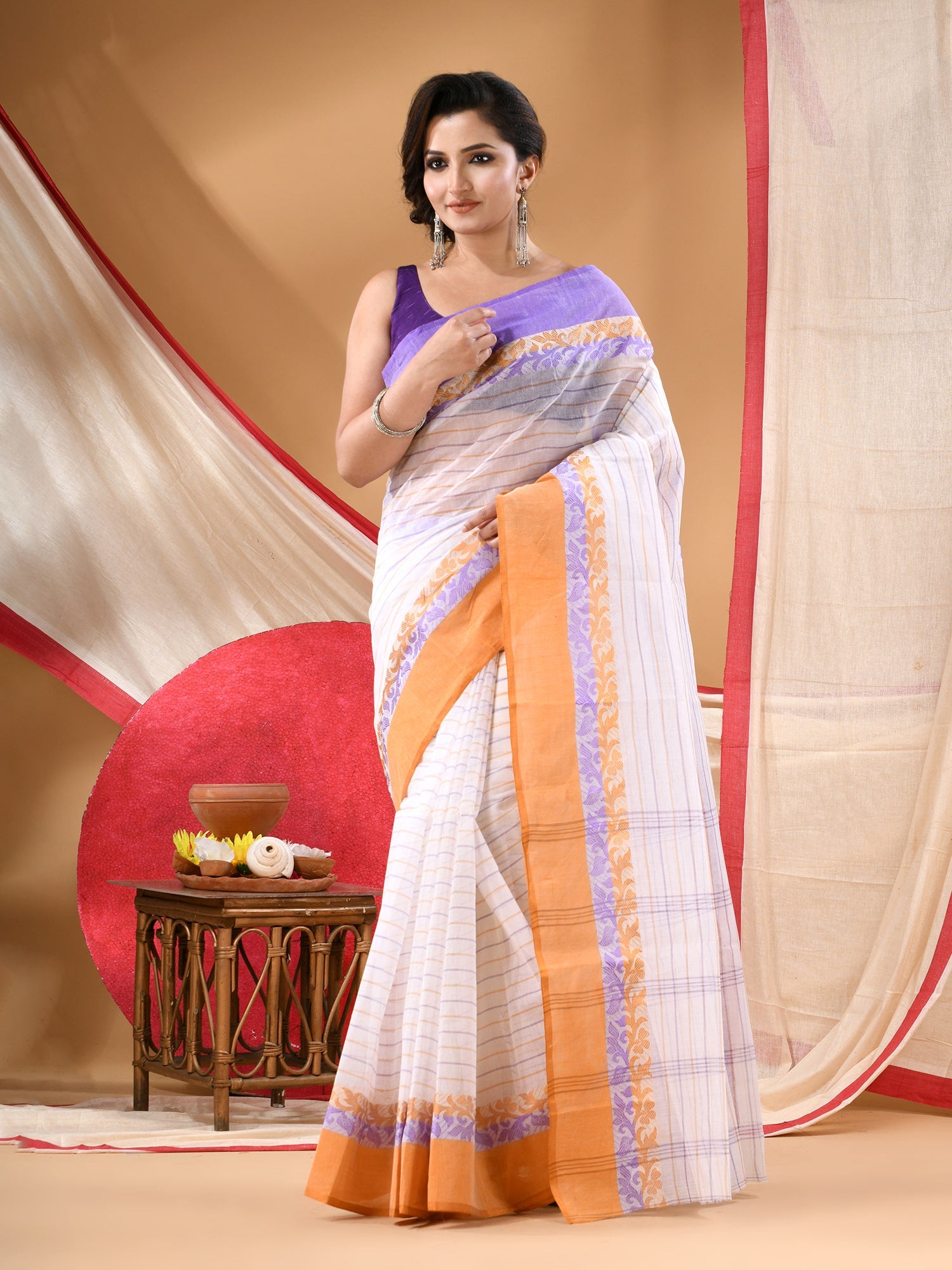 Women Tant cotton saree for woman party, wear sarees cotton georgette handloom wedding new chiffon collection sarees for women latest, Chitralekha design (Purple Orange)