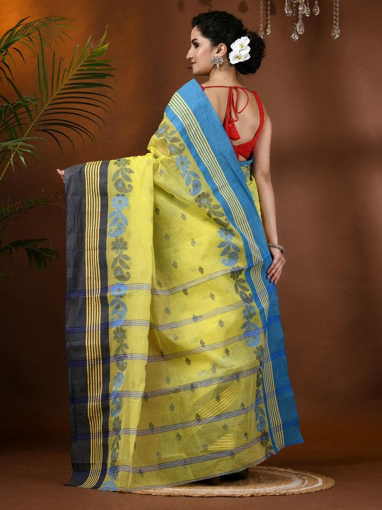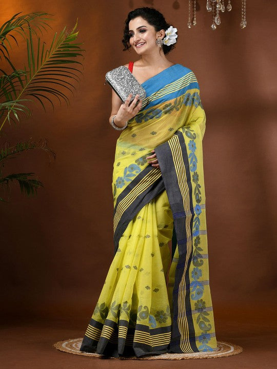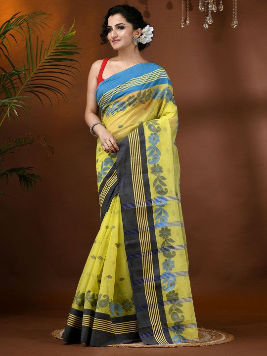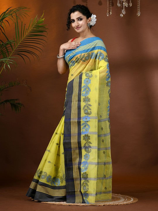 Floral Phulkari Pure Cotton Handloom Taant Saree
